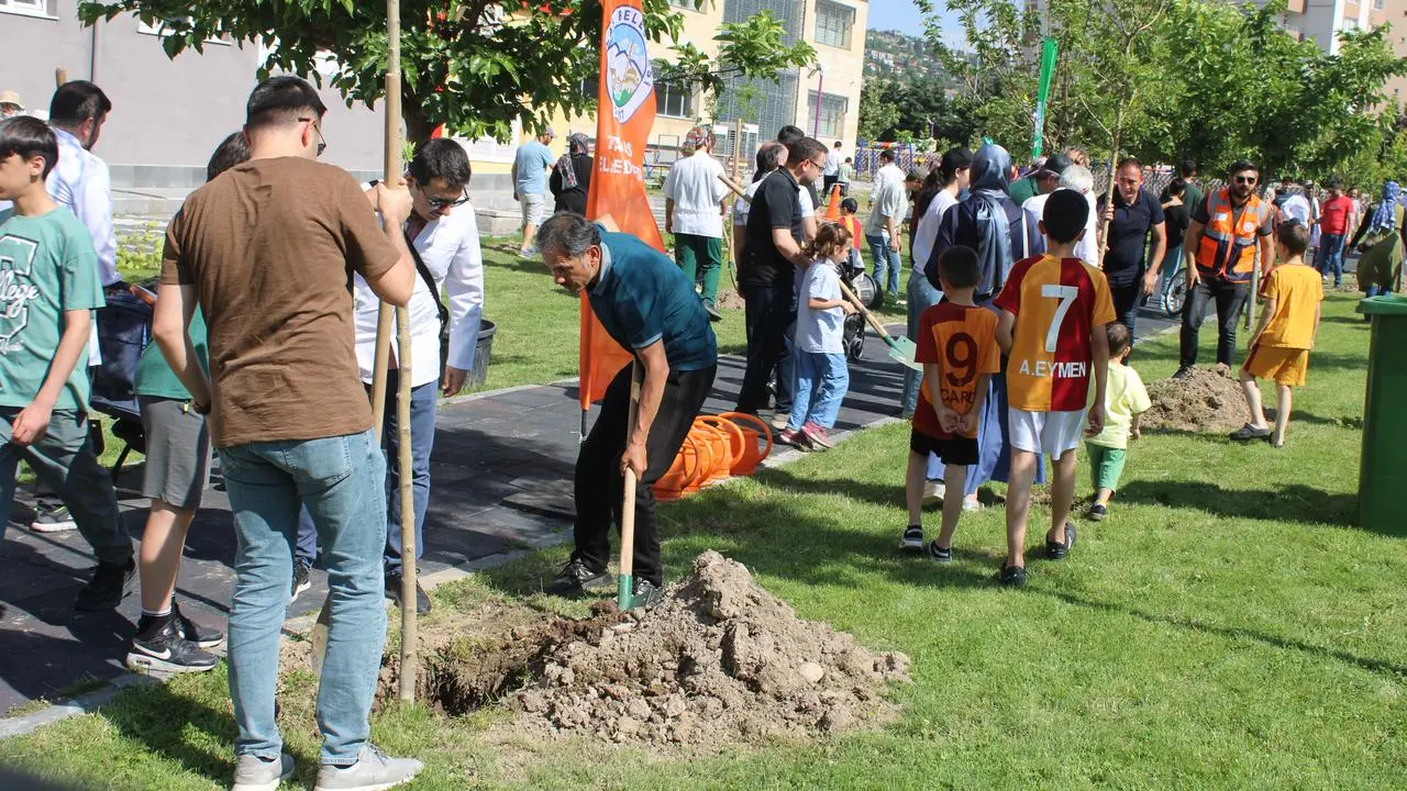 Kayseri'de sağlık çalışanları, Gazze'de hayatını kaybeden çocuklar için anlamlı bir fidan dikme etkinliği gerçekleştirdi.