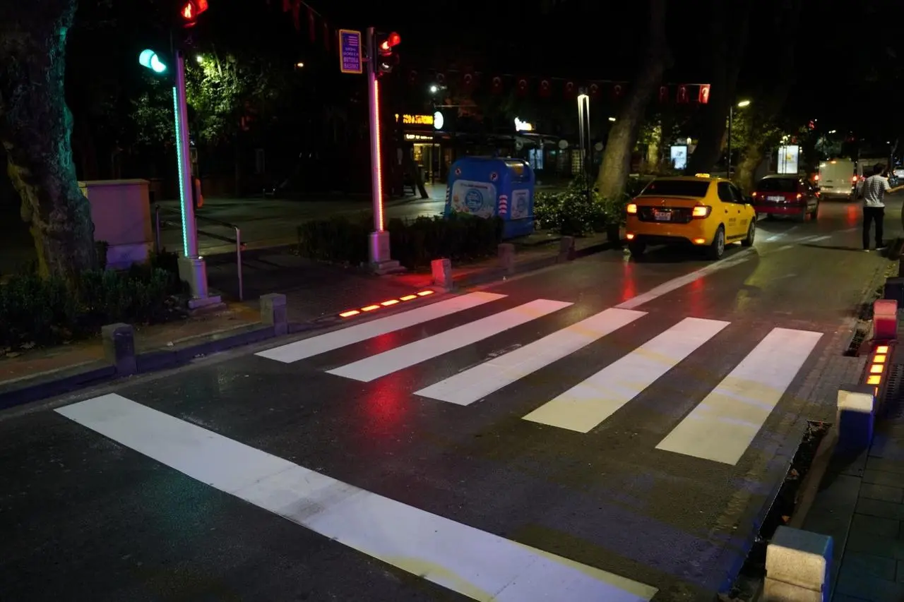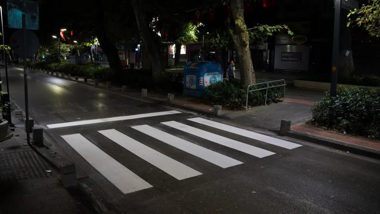 Okul önlerindeki yaya geçitleri yenilenerek trafik güvenliği artırılıyor. Çalışmalar gece saatlerinde yapılmaktadır.