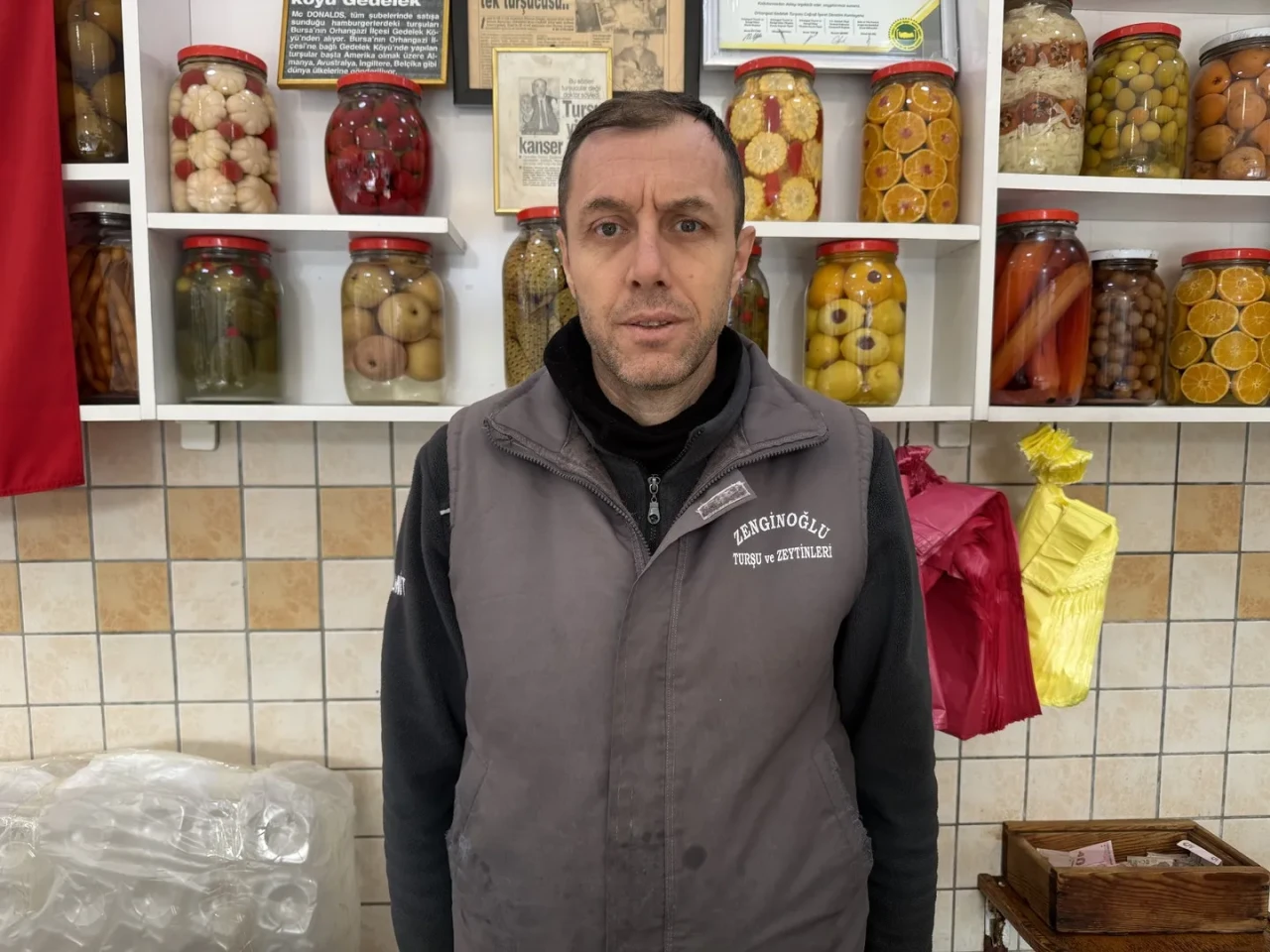 Cenk Zengin, dedesinden devraldığı mesleği 31 yıldır aynı dükkanda sürdürüyor. Turşunun doğal probiyotik kaynağı olduğunu vurgulayan Zengin, kışın taleplerin arttığını belirtiyor.