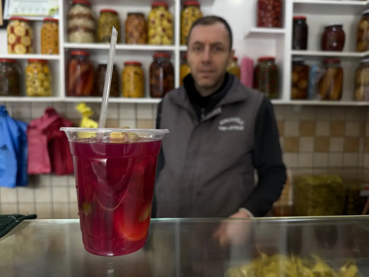 Turşu suyu mahalle sakinleri tarafından "doğal ilaç" olarak görülüyor. Grip belirtileri hissedenler, bağışıklık için turşu suyu içmeye geliyor.