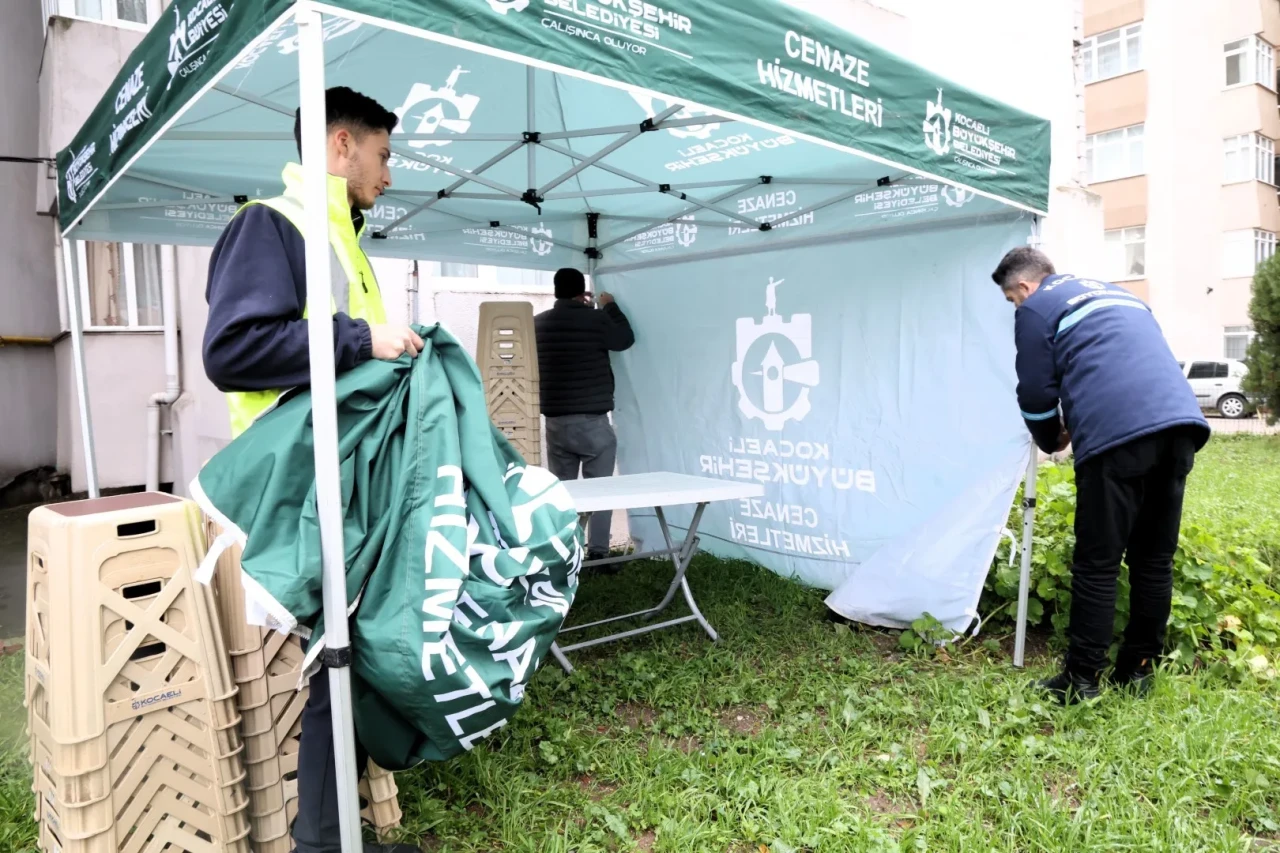 Kocaeli Büyükşehir Belediyesi, vefat edenlerin yakınlarına taziye sürecinde yardımcı oluyor. Mezarlıklar Şube Müdürlüğü ekipleri, taziye evlerine ekipman desteği sağlıyor.
