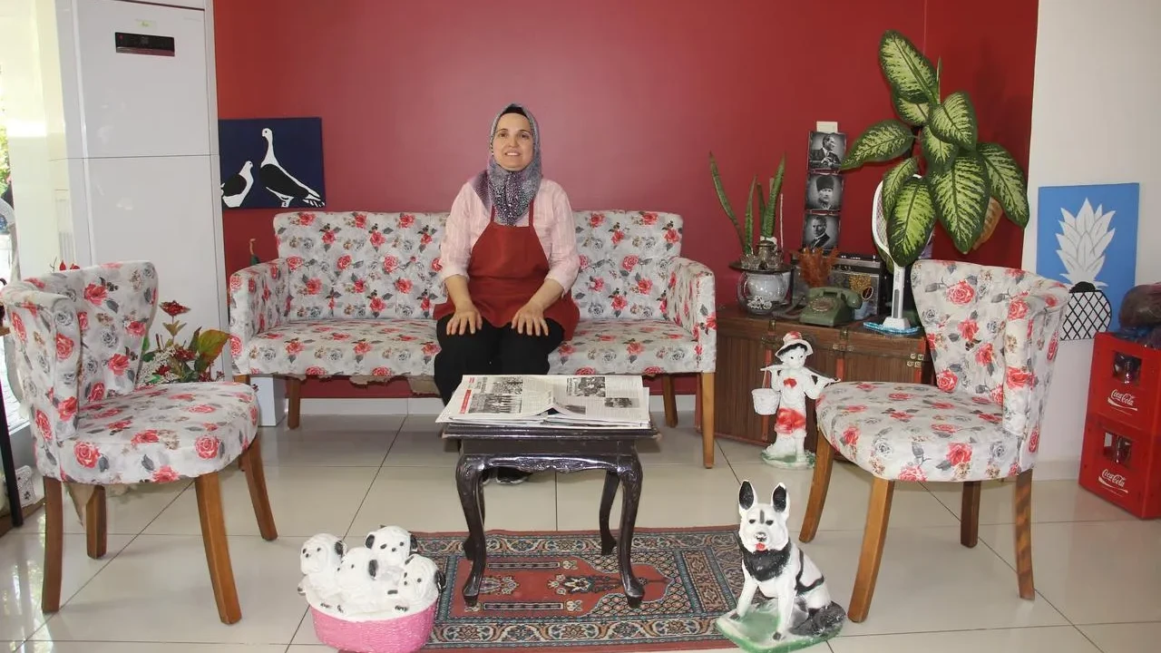Aydın'ın Koçarlı ilçesinde Tülay Çavaş, atalarından kalma eşyalarla oluşturduğu nostaljik köşeyi lokantasında sergiliyor.