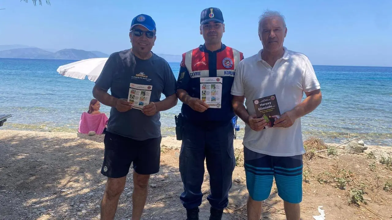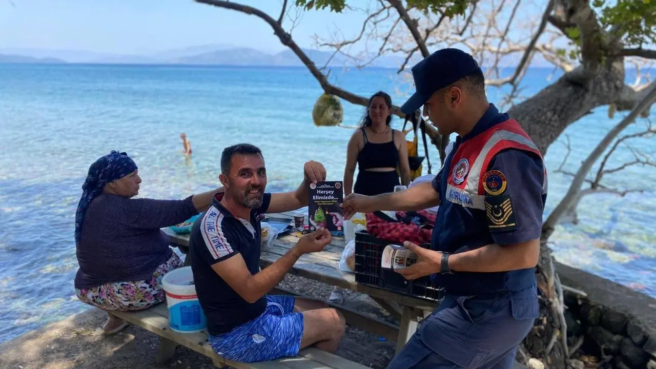 Jandarma ekipleri yerli ve yabancı turistlere doğa koruma broşürleri dağıttı. 'Her şey Elimizde' mottosuyla hazırlanan materyaller, orman yangınlarına karşı uyarılar içerdi.