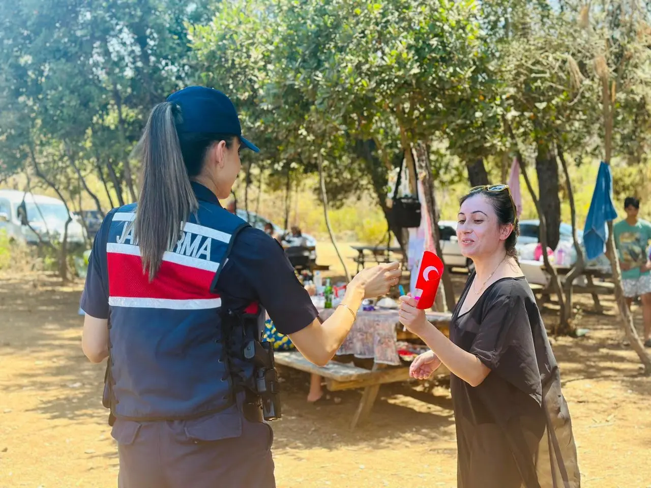 Aydın İl Jandarma Komutanlığı, parkta huzuru sağlamak için bilgilendirme yaptı. KADES'in indirilmesi ve acil durum kullanımı anlatıldı.