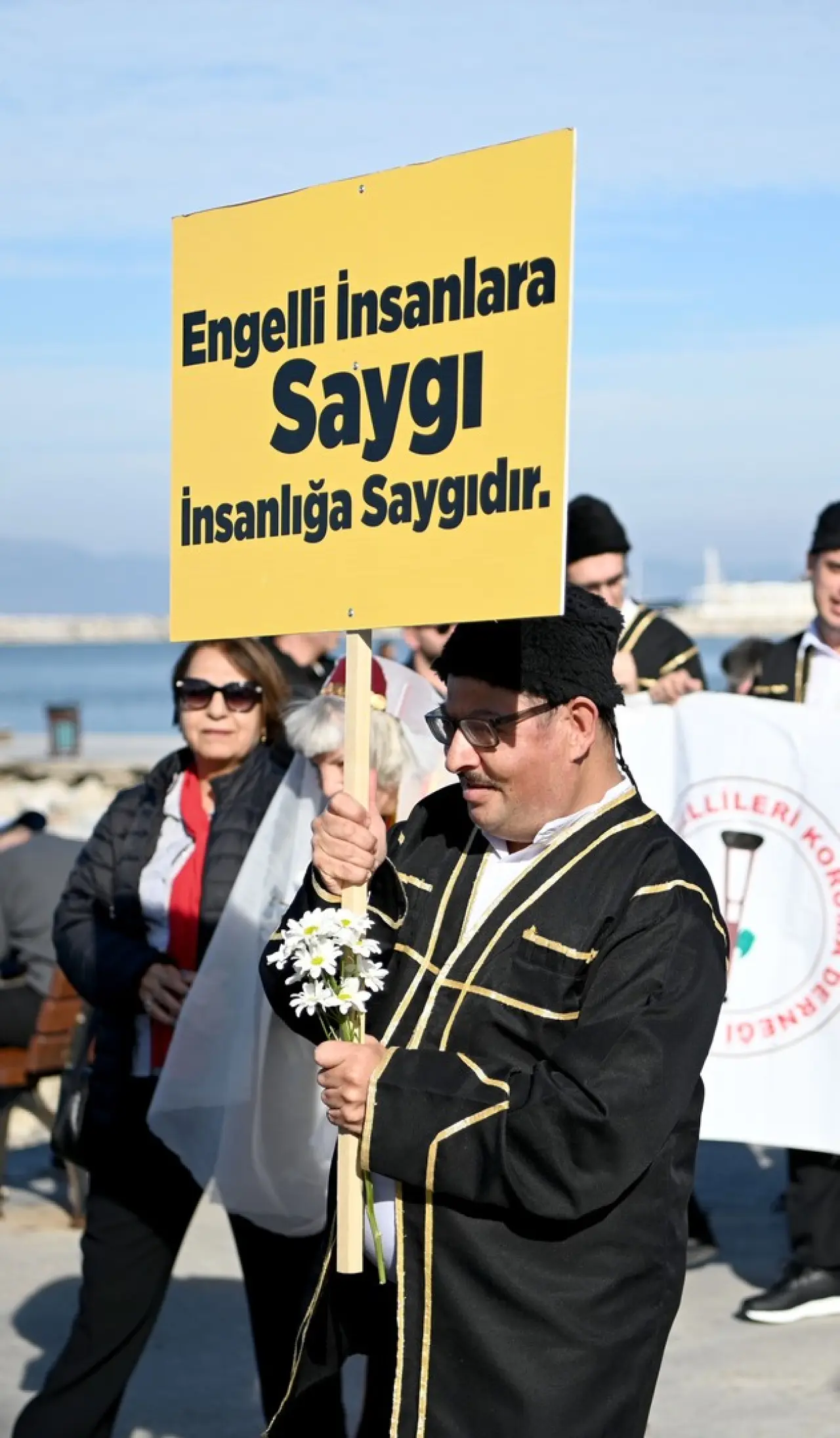 Etkinlikte "Engel değil destek olun" gibi anlamlı pankartlar taşındı. Katılımcılar engelli bireylerin sorunlarına dikkat çekmek için bir araya geldi.