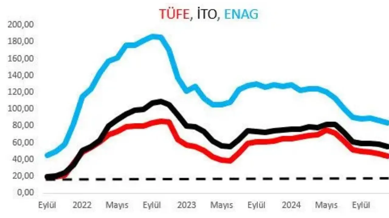 Eğilmez, enflasyonun etkilerini gözler önüne seren grafiklere de yer verdi. TÜİK, İTO ve ENAG verilerini kullanarak hazırladığı grafikte, faiz indirimlerinin enflasyon üzerindeki olumsuz etkilerini açıkça gösterdi. Eğilmez, faiz indiriminin enflasyonu %80 seviyelerine taşıdığını belirterek, bu yüksek enflasyonun hala kontrol altına alınamadığını ifade etti. 2025 yılına yönelik yapılan tahminlere göre, aylık %1,5’lik bir enflasyon düşüşü ile yılsonunda %19,56’lık bir seviyeye ulaşılmasının beklendiği vurgulandı.
