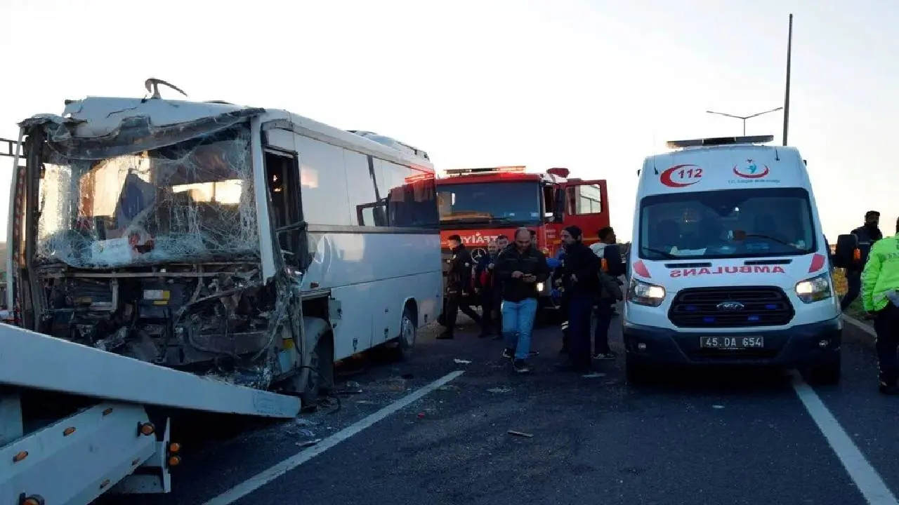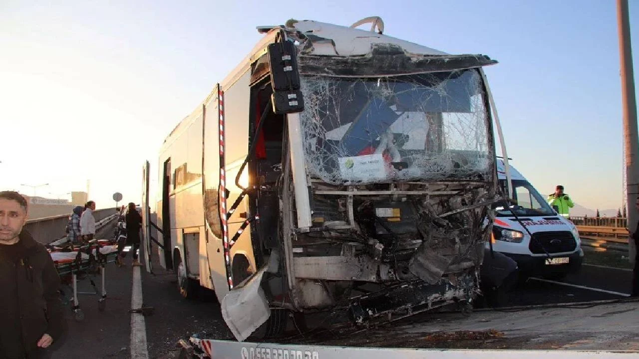 Manisa’nın Turgutlu ilçesinde işçileri taşıyan servis minibüsü, bir tıra arkadan çarptı. Kazada 22 işçi yaralanırken, yaralılardan 2’sinin durumunun ağır olduğu öğrenildi.