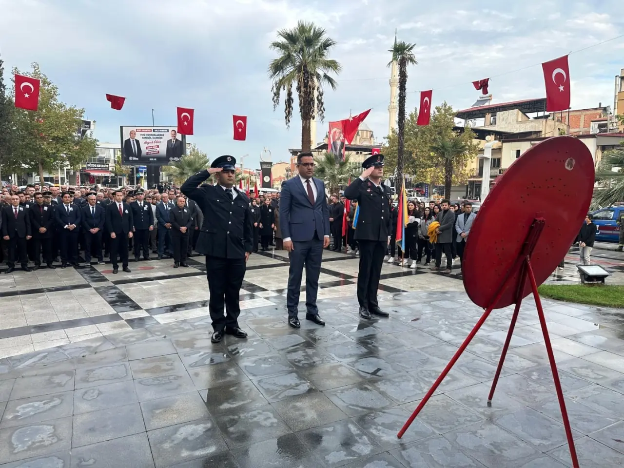 Sarıgöl’deki törene Kaymakam Halil Dalak ve Belediye Başkanı Tahsin Akdeniz katıldı. İlçe protokolü ve vatandaşlar, Atatürk’e olan saygılarını gösterdi.