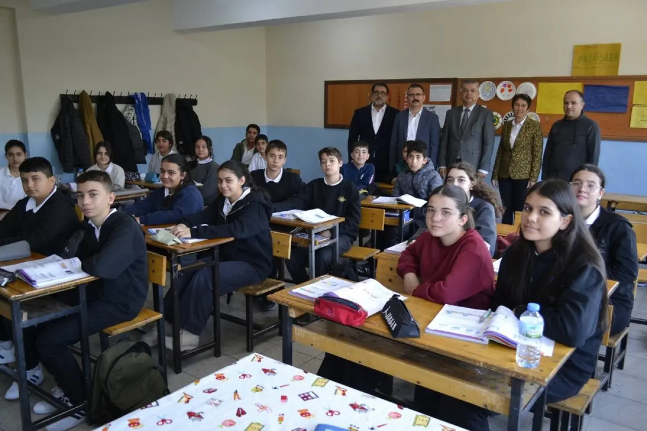 Sultanhisar Kaymakamı Ali Ekber Ateş, Atça Hadıloğlu İbrahim Uzunırmak Ortaokulu'nda öğrenci ve öğretmenlerle buluştu.
