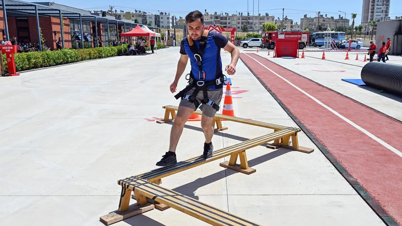 İtfaiye eri adayları, tam donanımlı koşu ve yangın merdiveni tırmanışı gibi görevleri tamamlıyor. Fiziksel dayanıklılık ve mesleki yeterlilik, objektif kriterlerle değerlendiriliyor.