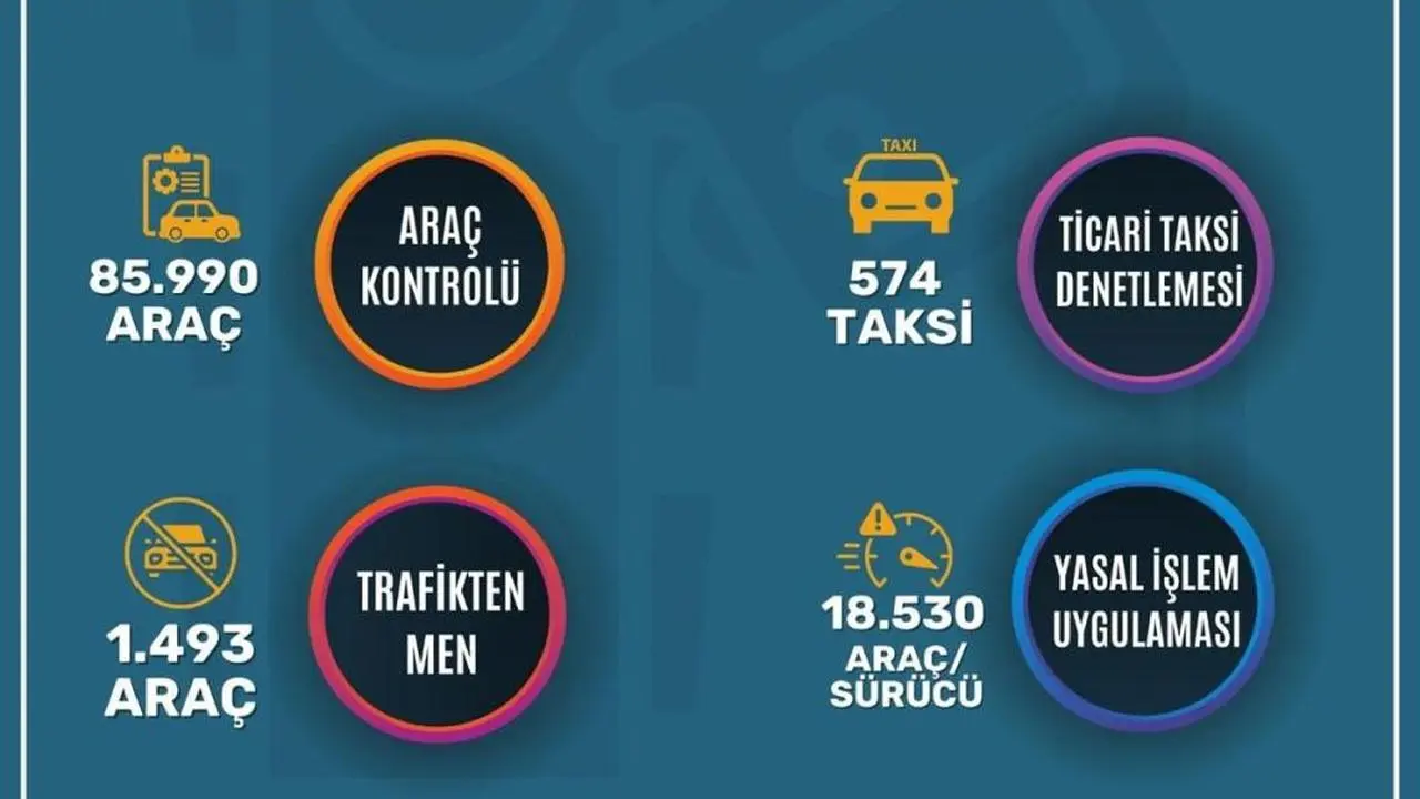 Trafik ekipleri, aynı dönemde gerçekleştirdikleri denetimlerde 85 bin 990 aracı kontrol etti. Bu kontrollerde bin 493 araç trafikten men edilirken, 18 bin 530 sürücüye çeşitli ihlallerden dolayı cezai işlem uygulandı. Amaç, trafik güvenliğini en üst düzeye çıkarmak.