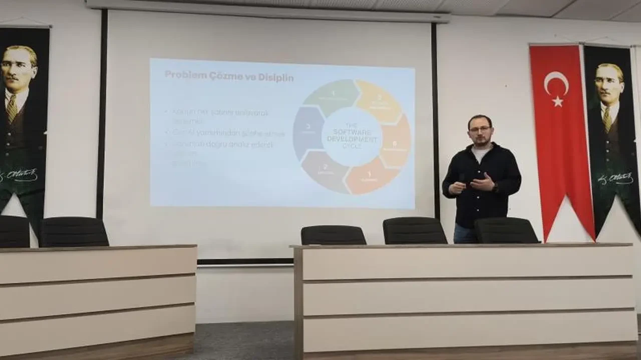 Mobil Ekip Lideri Bozkurt Erdem Belovacıklı, söyleşide kendi kariyer yolculuğunu anlatarak öğrencilere ilham verdi. Girişimcilik sürecinde karşılaştığı zorlukları, bu zorlukların üstesinden nasıl geldiğini ve elde ettiği başarıları paylaştı. Uygulama geliştirme konusundaki deneyimlerini aktaran Belovacıklı, öğrencilere sürekli öğrenmeye açık olmalarını, yenilikleri takip etmelerini ve hatalardan ders çıkarmalarını tavsiye etti. Belovacıklı, gençlerin mobil girişimcilik potansiyelini ortaya çıkarmalarına destek olmak için önemli bilgiler aktardı.