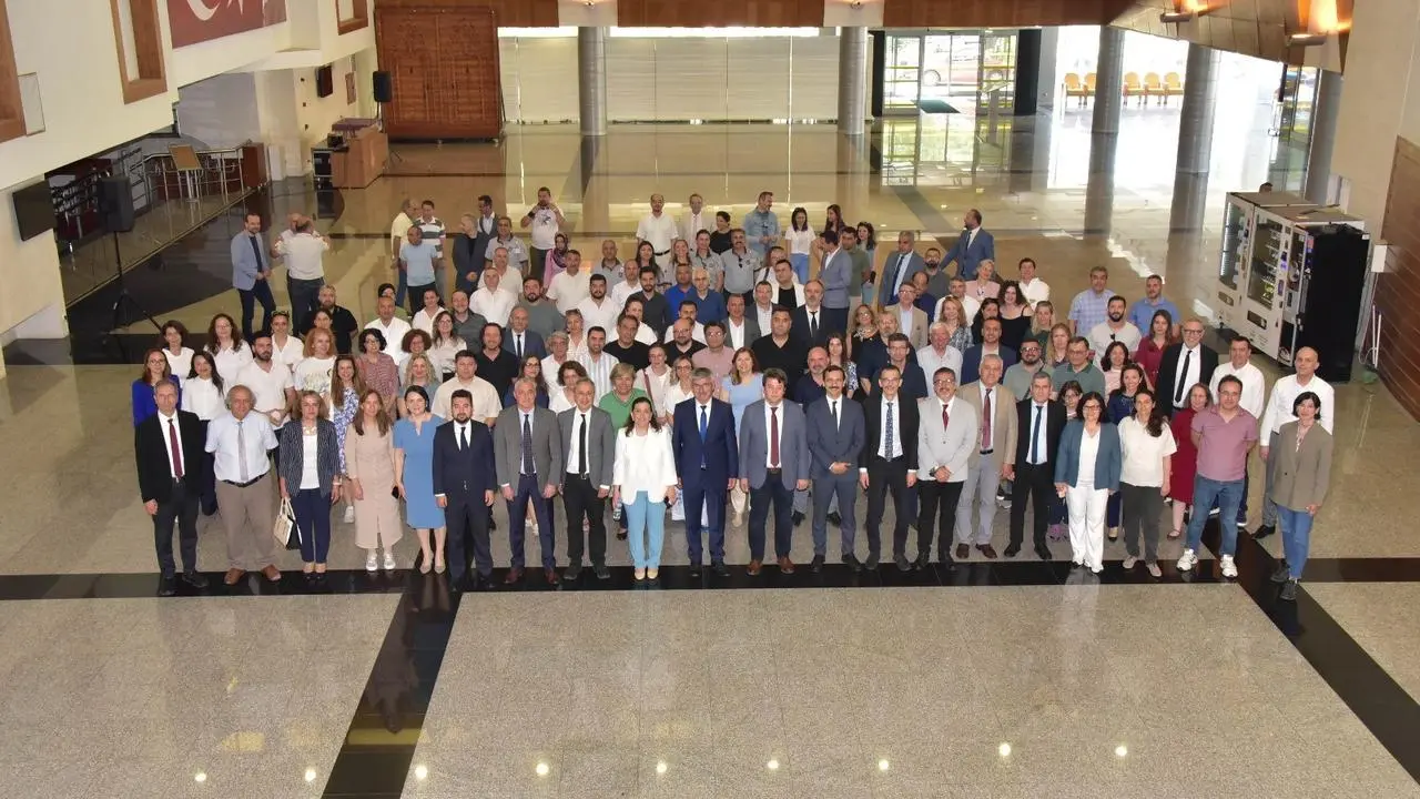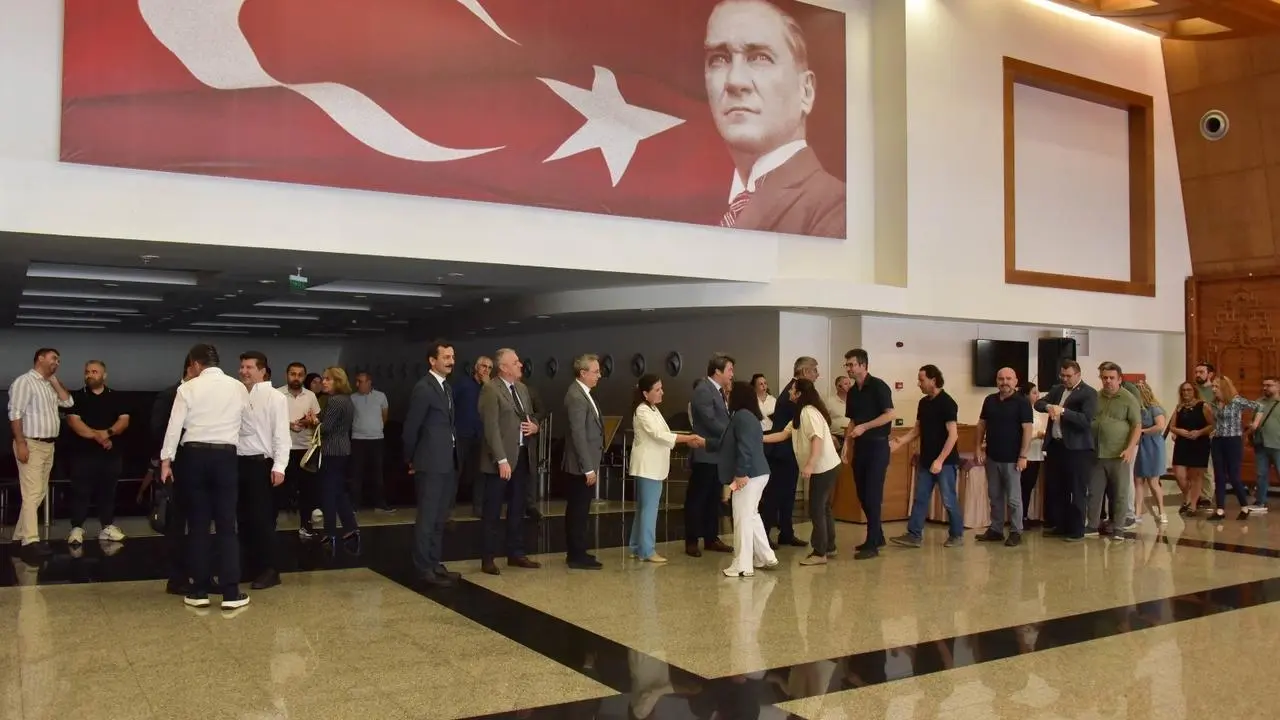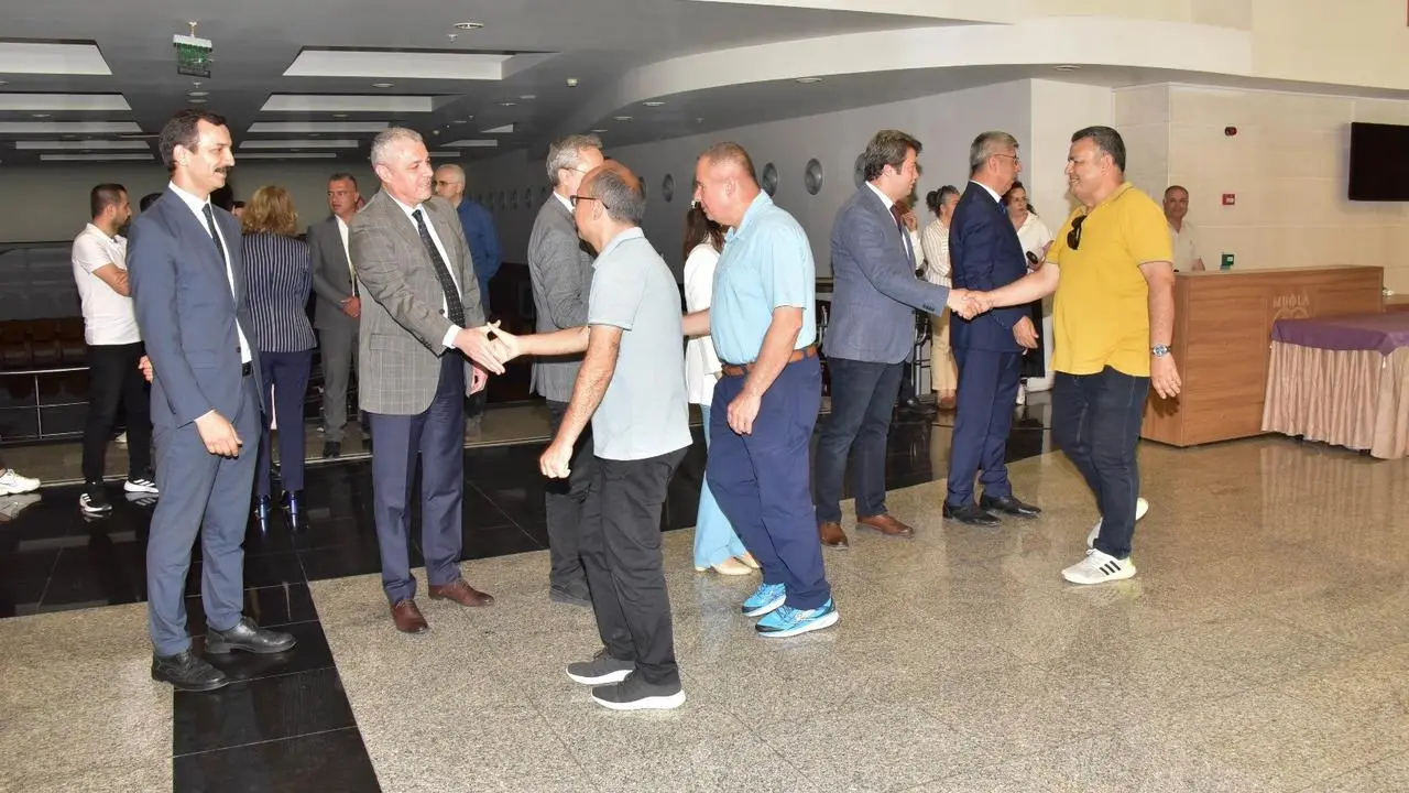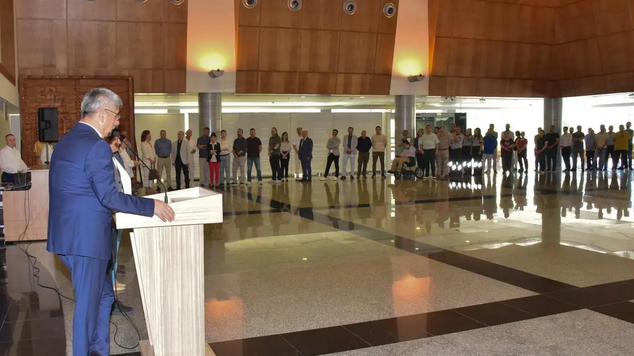 MSKÜ personeli, Kurban Bayramı nedeniyle Atatürk Kültür Merkezi fuaye alanında düzenlenen bayramlaşma töreninde bir araya geldi.