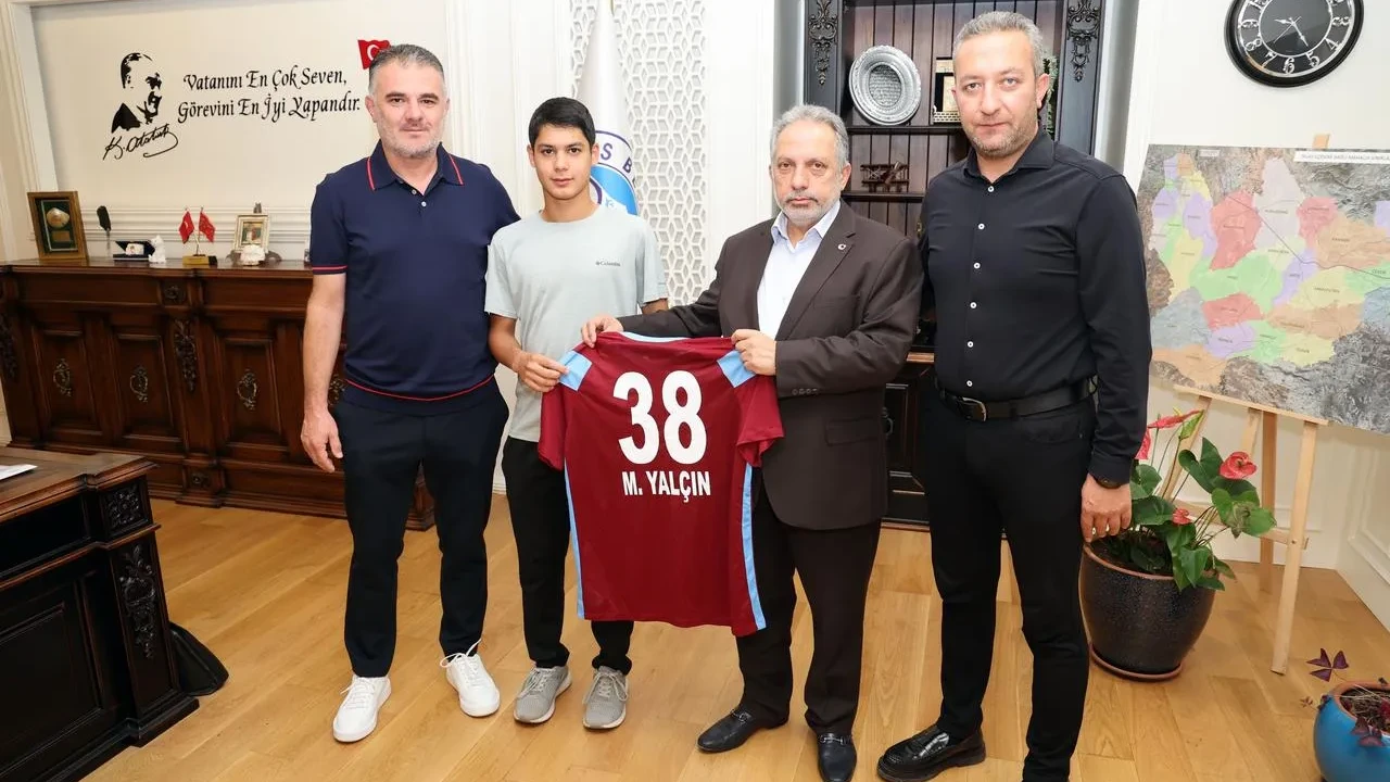 Talas Belediyespor’un yetiştirdiği genç yetenek Mustafa Çiğdem, Trabzonspor’a transfer olarak büyük bir başarıya imza attı. Mustafa, Talas Belediye Başkanı Mustafa Yalçın’ı ziyaret ederek teşekkürlerini iletti.
