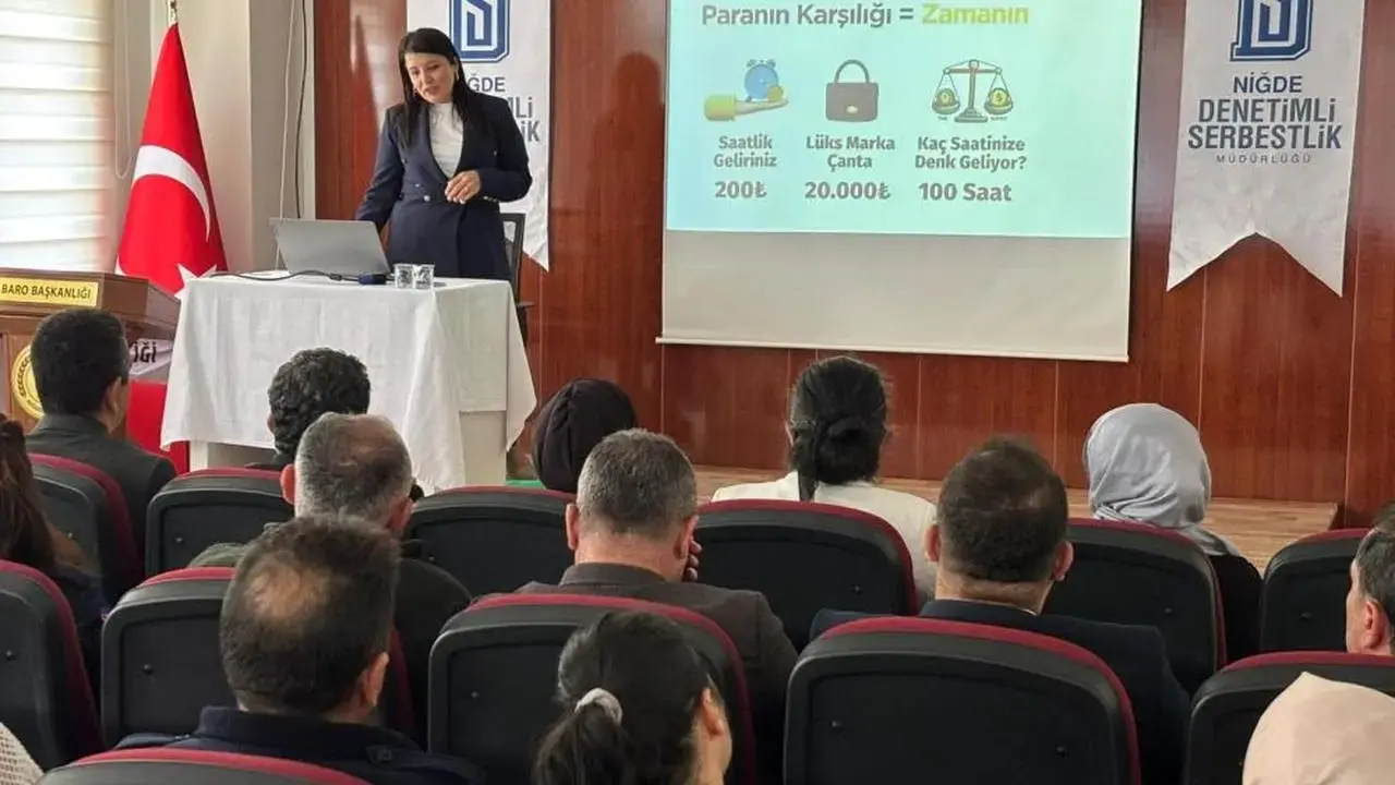 Niğde'de Denetimli Serbestlik Müdürlüğü ve Niğde Ömer Halisdemir Üniversitesi iş birliğiyle adliye personeli ve denetimli serbestlik yükümlülerine finansal okuryazarlık eğitimi verildi. Doç. Dr. Hatice Elanur Kaplan tarafından verilen eğitimde, katılımcılara bütçe yönetimi, gelir-gider dengesi, tasarruf bilinci, borç yönetimi ve finansal planlama gibi konularda bilgiler aktarıldı. Eğitim ile bireylerin finansal farkındalık düzeylerini artırmak ve ekonomik kararlarında daha bilinçli olmalarını sağlamak hedefleniyor.