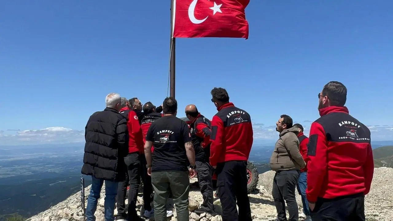 Off-road sporcuları Ilgaz Dağı'nın zirvesinde bulunan yıpranmış Türk bayrağını yeni bayrakla değiştirme görevini başarıyla tamamladı.