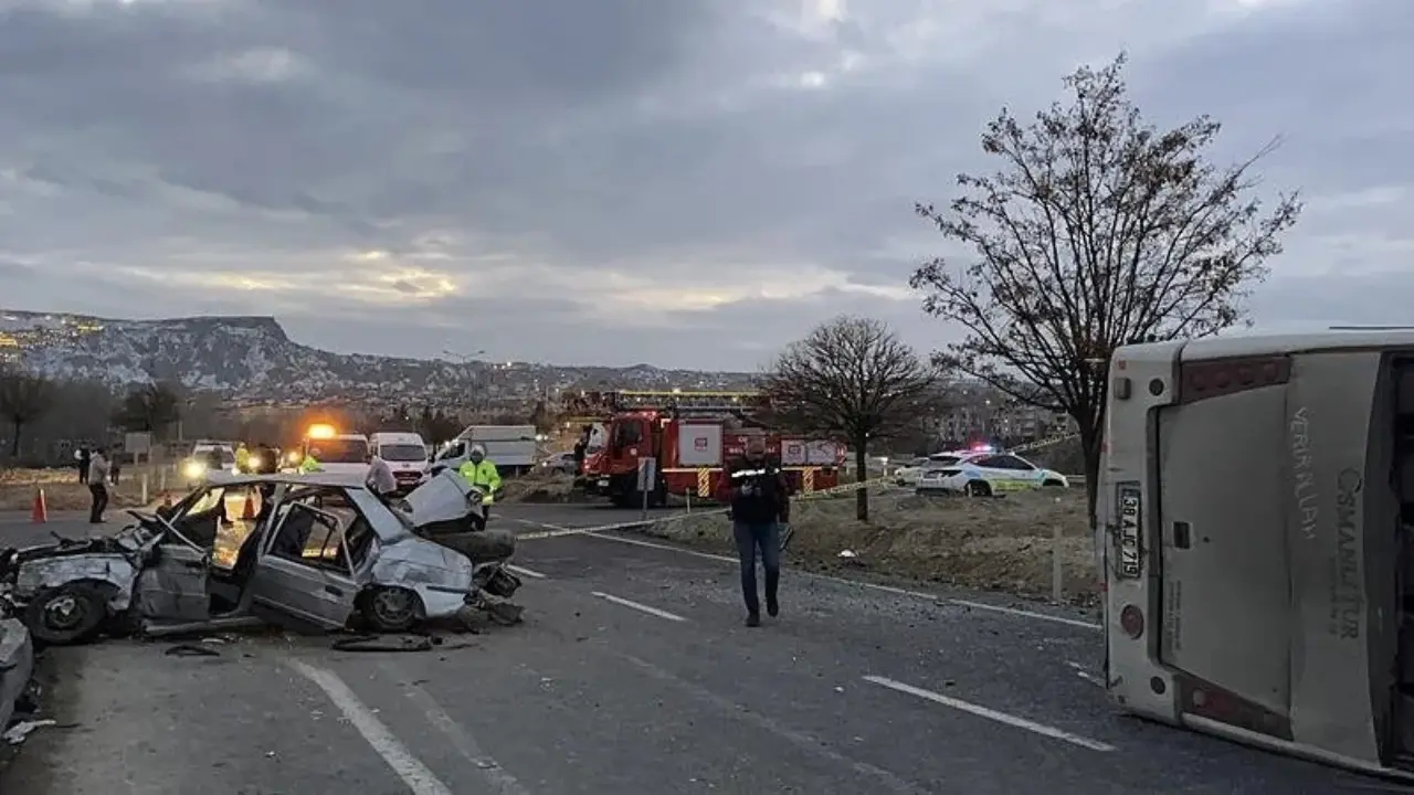 Nevşehir'in Ürgüp ilçesinde, üniversite öğrencilerini taşıyan bir midibüs ile otomobil çarpıştı. Kayseri istikametine doğru hareket eden Hamdi D. yönetimindeki midibüs, Ferhat B. yönetimindeki otomobille çarpıştı. Çarpışmanın şiddetiyle midibüs devrildi.