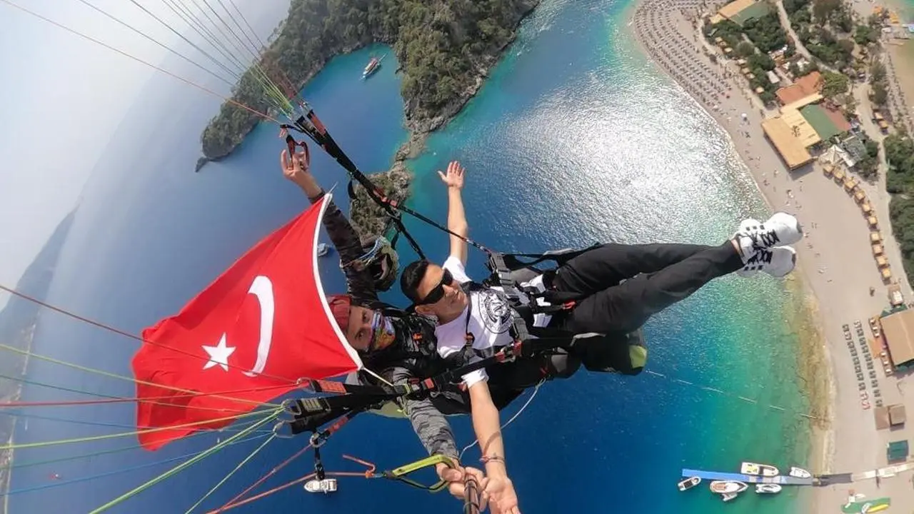 Ölüdeniz semalarında, 19 Mayıs coşkusu yamaç paraşütü gösterisiyle taçlandı. Öğrenciler, tecrübeli pilotlar eşliğinde Babadağ'dan havalandı. Gökyüzünde açılan dev Türk bayrağı, izleyenlere gurur dolu anlar yaşattı. Yamaç paraşütü gösterisi, bayram kutlamalarına farklı bir boyut kazandırdı.