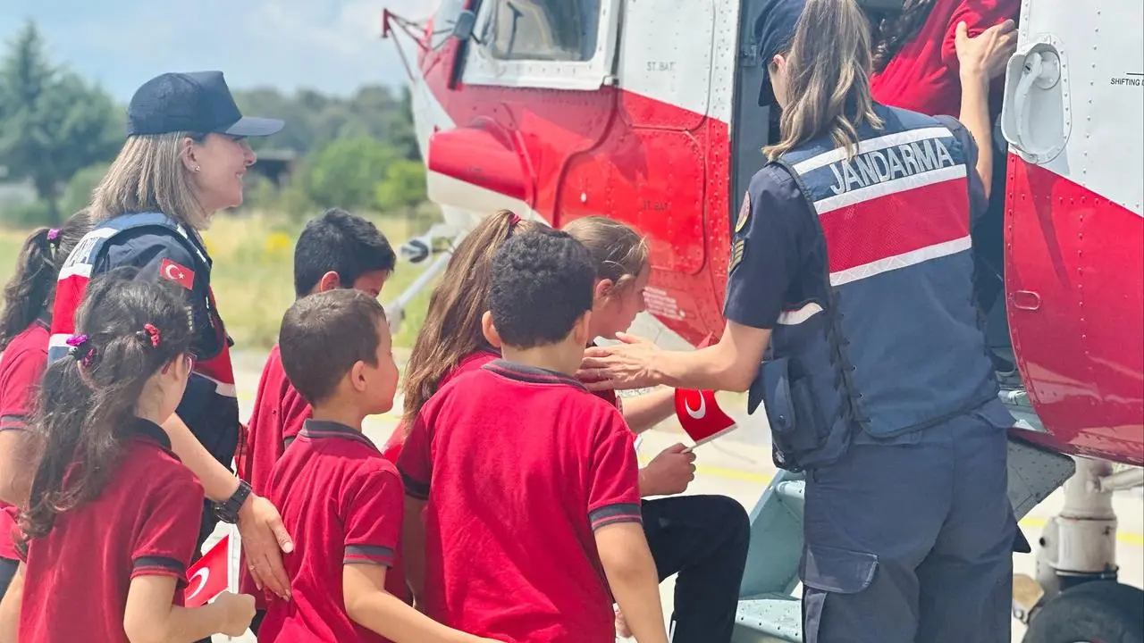 Öğrenciler Jandarma Helikopter Filo Komutanlığı'nı yakından tanıma fırsatı buldu. Komutanlık personeli, çocuklara birimler hakkında detaylı bilgiler verdi.