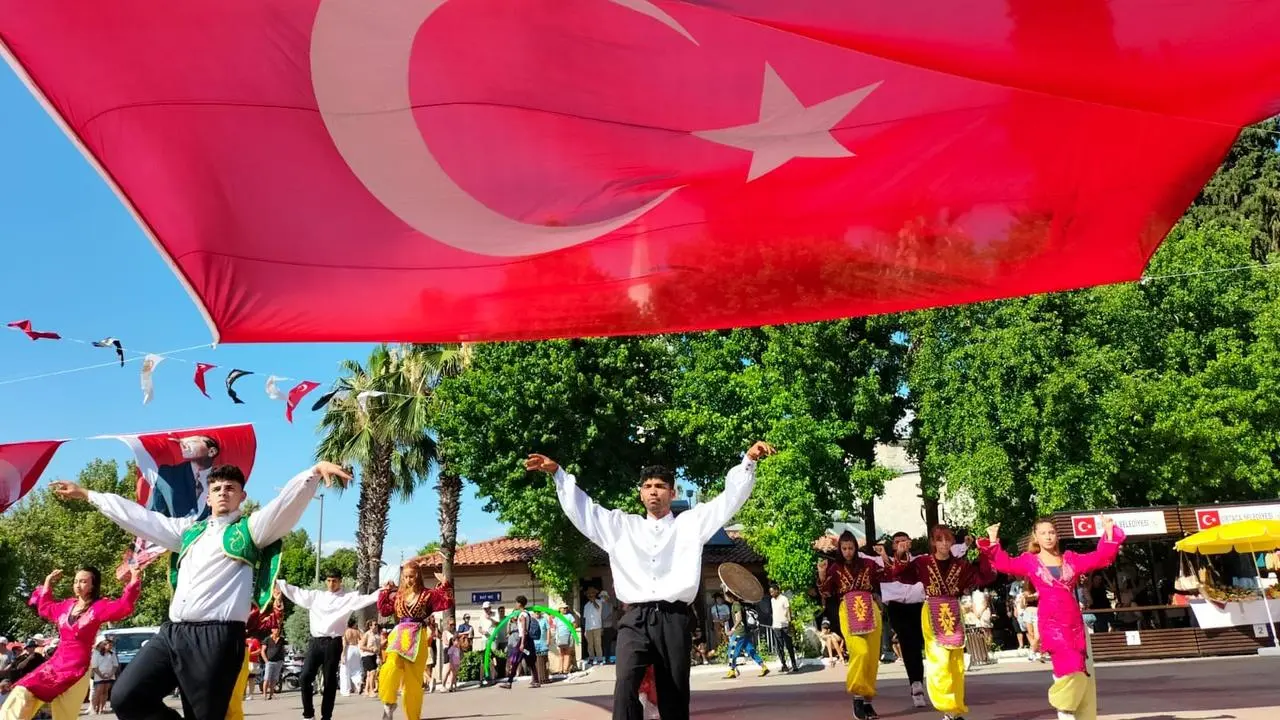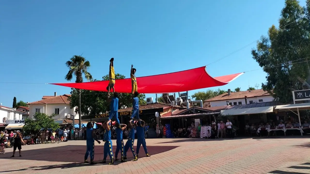 Dalyan Mahallesi Atatürk Meydanı'nda kutlamalar akrobasi gösterisiyle açıldı. Kaunos Halk Oyunları ekibi gösterileriyle izleyenleri büyüledi.