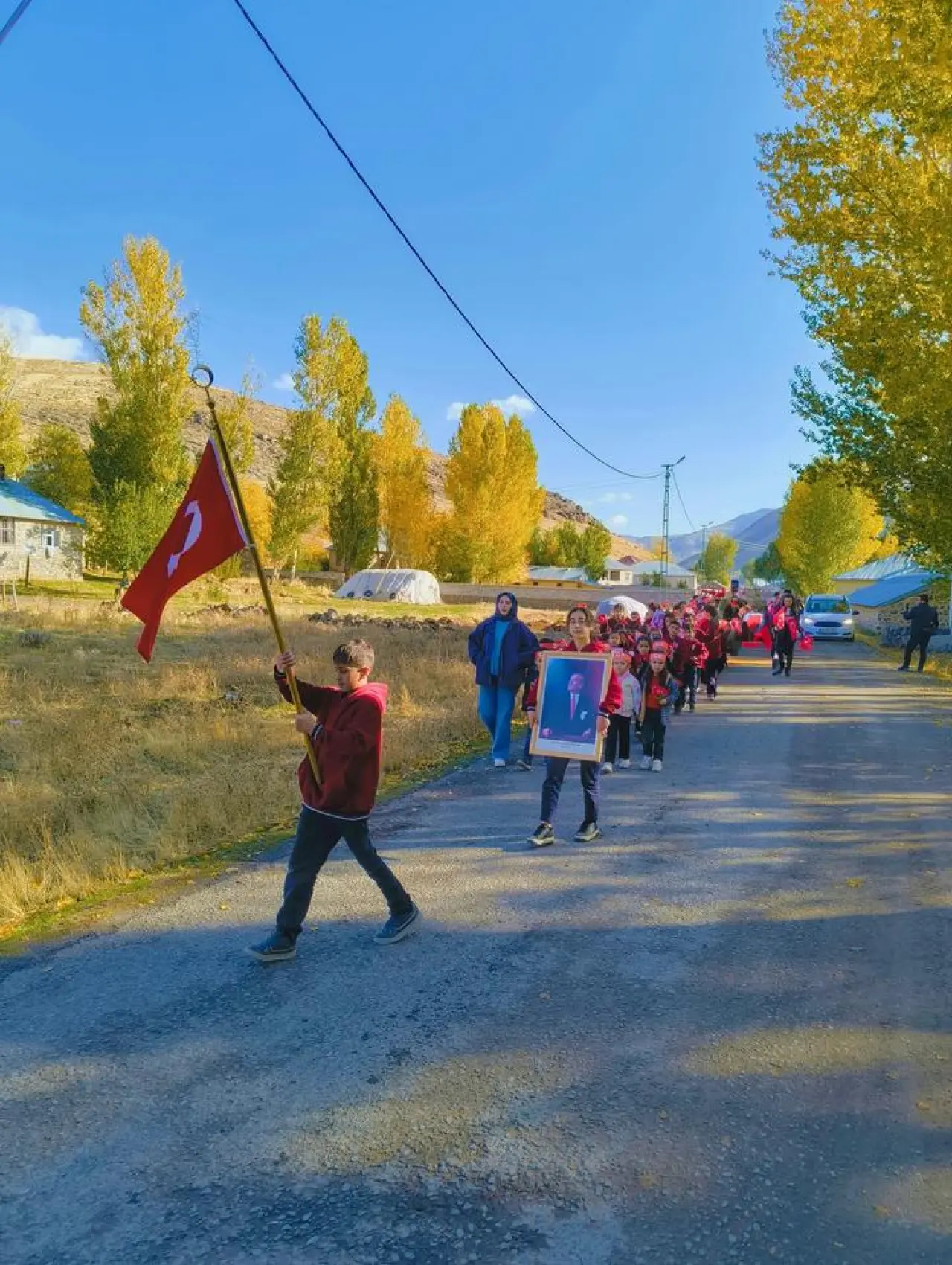 Ağrı'nın Patnos ilçesinde Cumhuriyet'in 102. yılı kutlamaları renkli anlara sahne oldu. Öğrenciler Türk bayraklarıyla yürüyüş yaparak coşkuyu köy sakinleriyle paylaştı.
