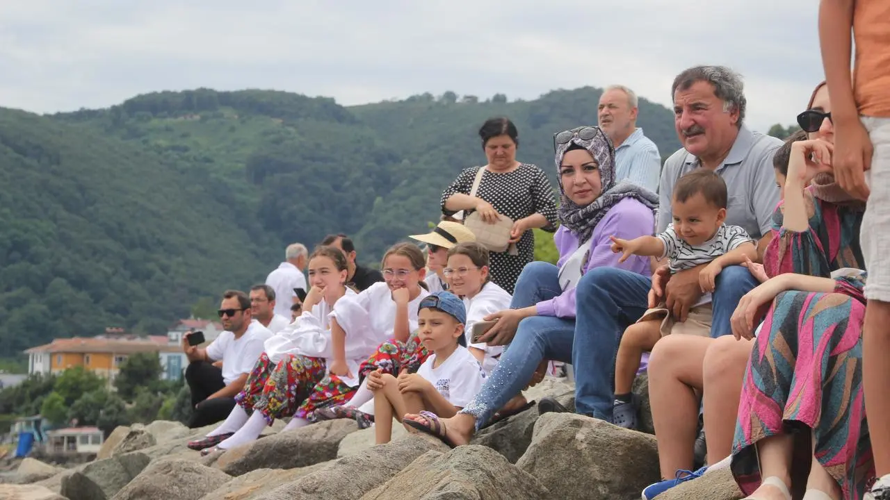 İskele üzerinde saygı duruşu ve İstiklal Marşı ile tören başladı. Kaymakam Fatma Turhan Keser ve Belediye Başkanı Cihat Albayrak denize çelenk bıraktı.
