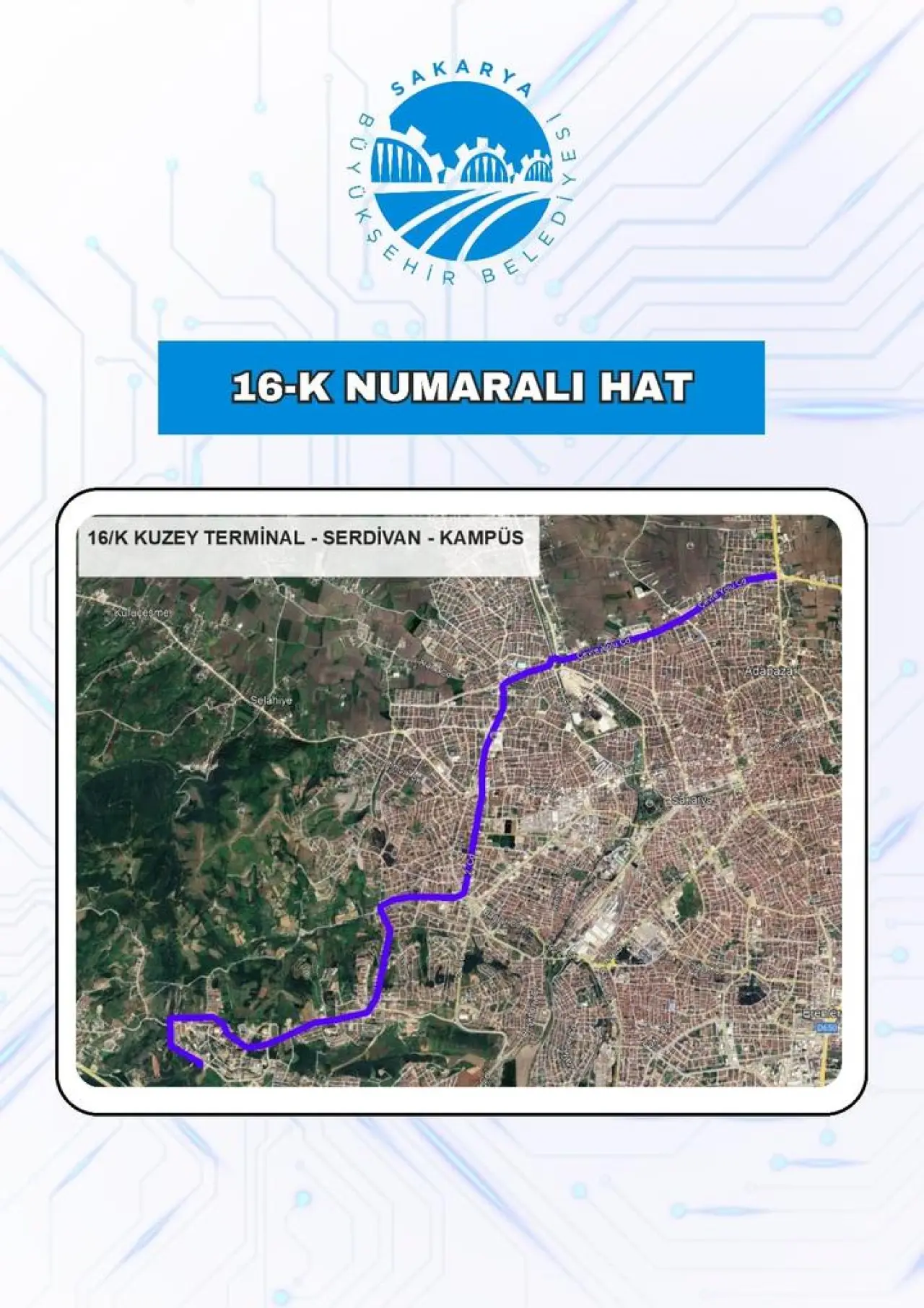 Yeni 16-K hattı, Kuzey Terminal-Serdivan-Kampüs güzergahında hizmet verecek. 11 numaralı hat artık SGM'den kalkarak Et Balık'a ulaşacak.