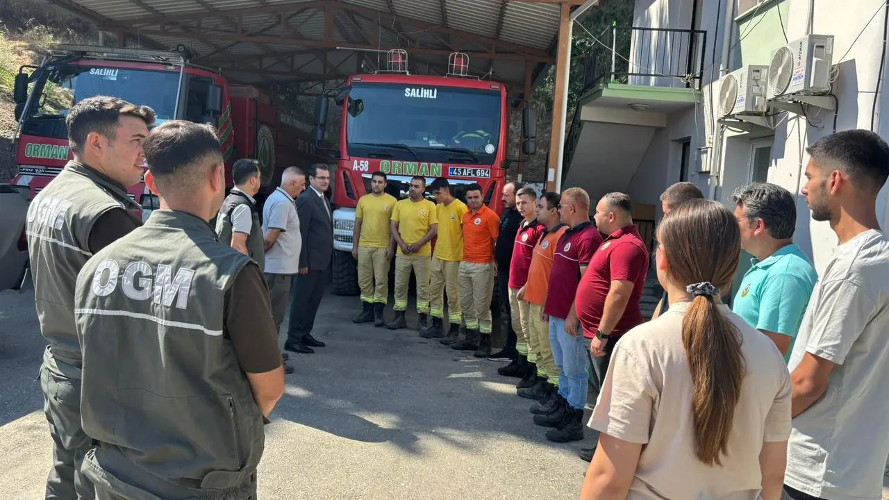 Salihli Kaymakamı Ali Güldoğan, orman yangınlarıyla mücadelede önemli rol oynayan ekipleri ziyaret ederek çalışmaları yerinde inceledi.