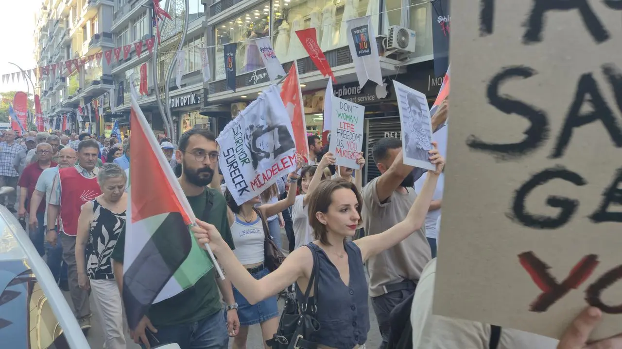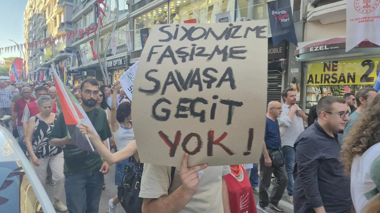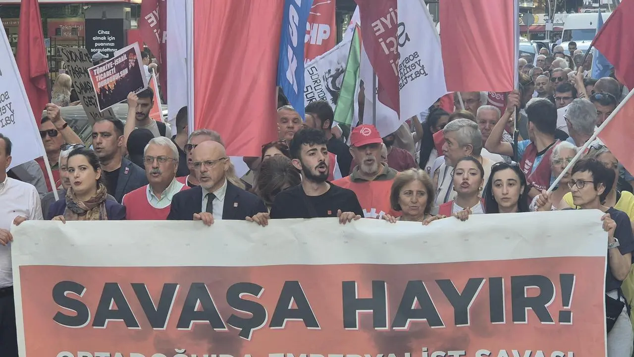 Katılımcılar "Savaşa hayır barış hemen şimdi" ve "Gazze'de düşene dövüşene bin selam" sloganları attı. Yürüyüşte İsrail'in Filistin ve İran'a yönelik saldırıları kınandı.