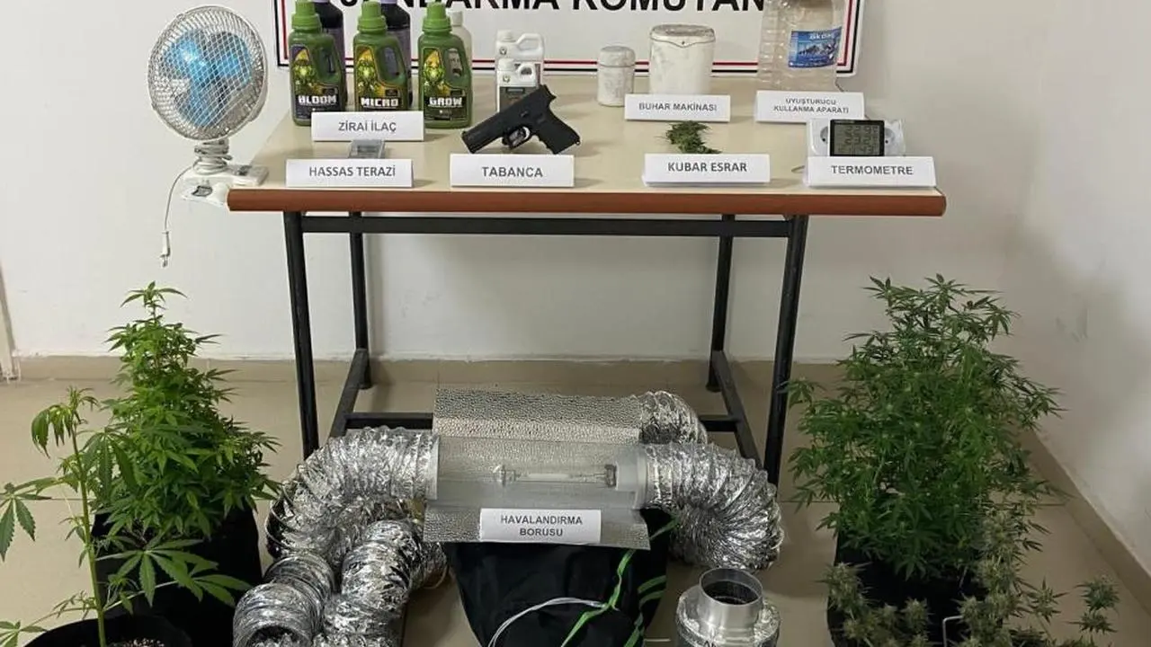 Operasyon sırasında yapılan aramalarda, 1 adet iklimlendirme sistemi, 4 kök kenevir bitkisi, 13 gram kubar esrar, 1 adet ruhsatsız tabanca, 1 adet uyuşturucu kullanma aparatı, 1 adet hassas terazi, 18 adet 7,65 mm çapında fişek ve 6 litre sıvı gübre ele geçirildi. Ele geçirilen malzemeler, şahsın uyuşturucu madde yetiştirmek ve ticaretini yapmak amacıyla profesyonel bir düzenek kurduğunu ortaya koydu.