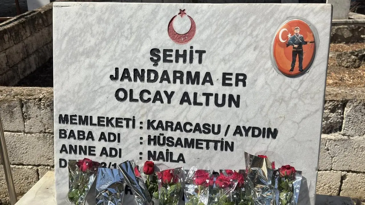 Batman'da şehit olan Jandarma Er Olcay Altun, Aydın'ın Karacasu ilçesinde mezarı başında anıldı.