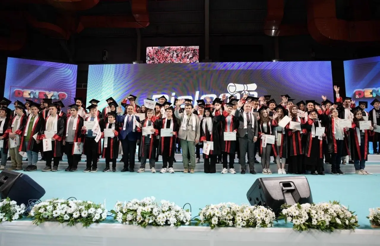 Bahçelievler Şehit Mustafa Özel Spor Kompleksi’nde düzenlenen törene binlerce katılımcı geldi. Mezun olan öğrenciler, üç yıllık eğitimlerini tamamlamanın gururunu yaşadı.
