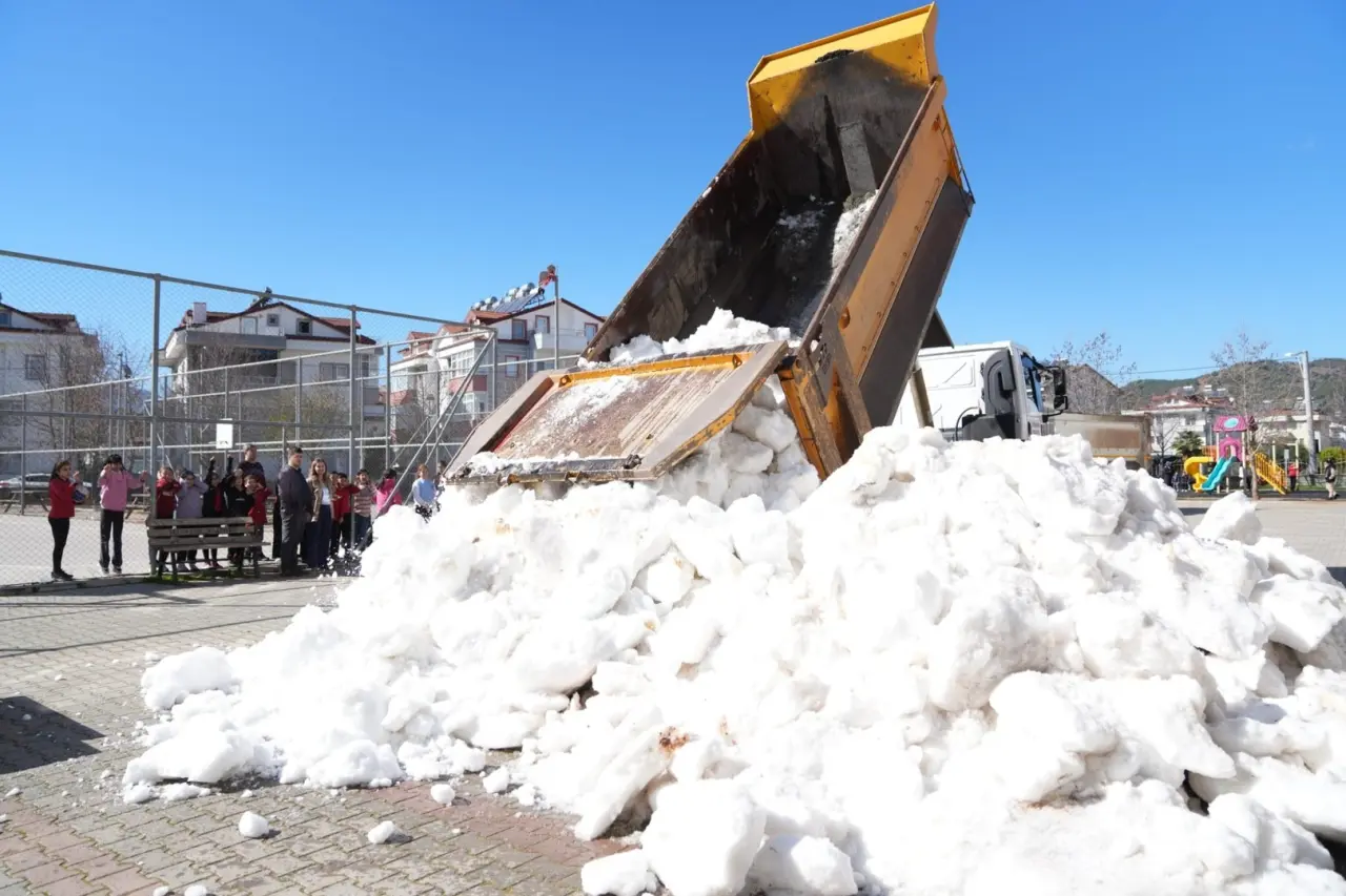 Mesut Emir'in "Babam yerine Önder amcam karı buraya getirir" sözleri harekete geçirdi. Belediye ekipleri, kamyonlarla taşıdıkları karla çocukların yüzünü güldürdü.