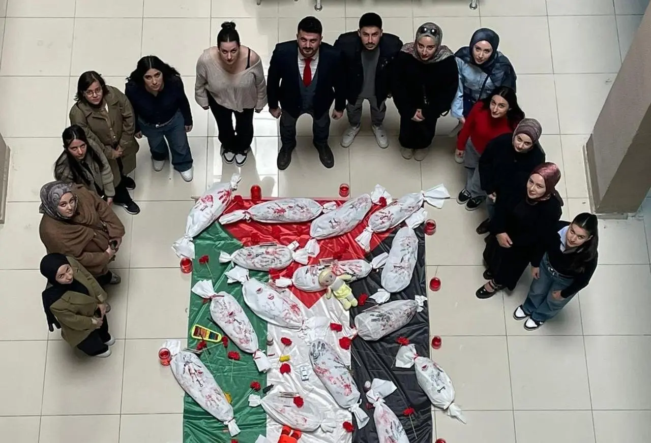 Sivas Cumhuriyet Üniversitesi'nde Filistin’de yaşanan zulme dikkat çeken anlamlı bir proje gerçekleştirildi. Öğrenciler, sanatsal enstalasyonlar ve sembolik etkinliklerle farkındalık yarattı.