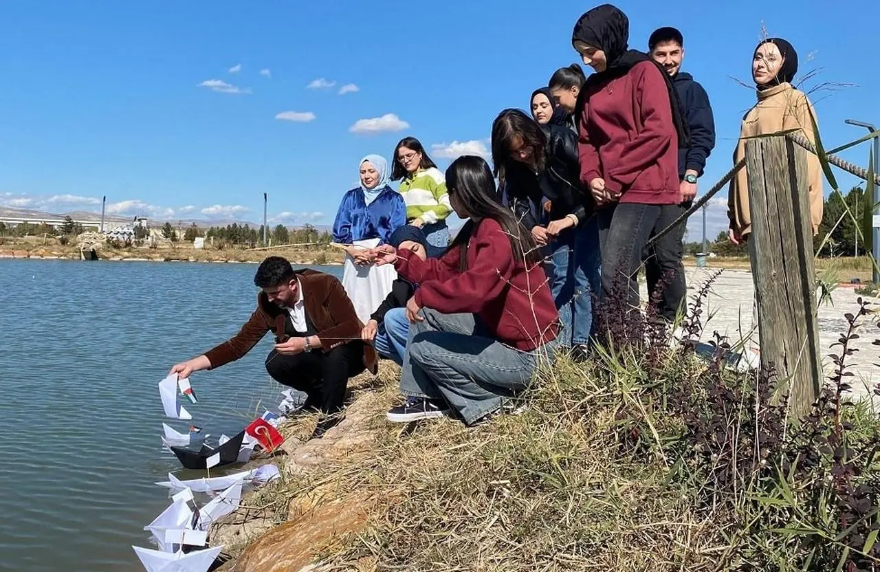 Has Bahçe’de sembolik bir etkinlik düzenlendi minyatür gemiler suya bırakıldı. Bu etkinlikle, Filistin halkına dayanışma mesajı verildi.