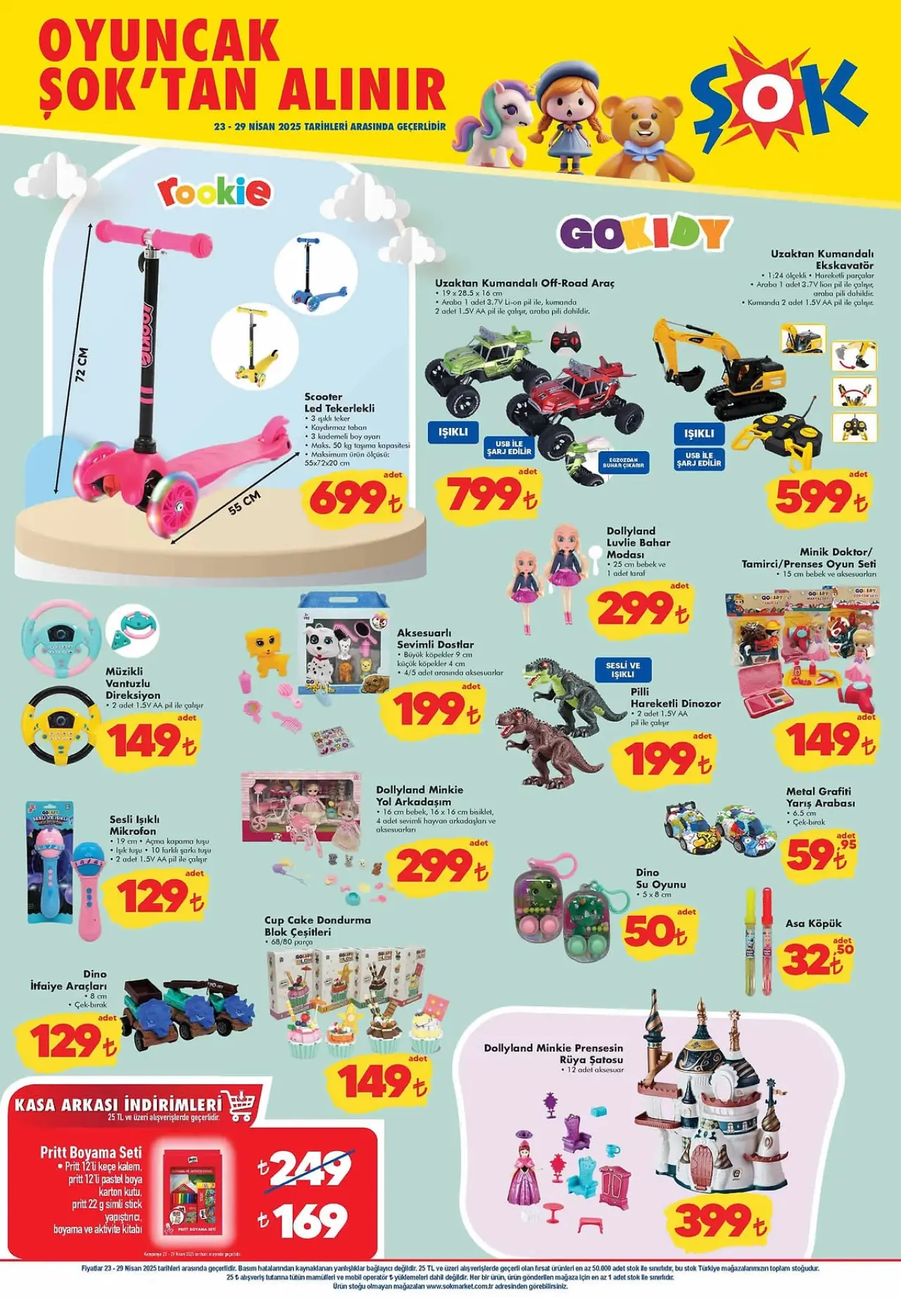 23 Nisan'a özel olarak çocuklara hitap eden birçok yeni oyuncak bu hafta ŞOK'ta yer alacak. Hot Wheels Şampiyonluk Parkuru 699 TL, Polly Pocket Moda Aksesuar Setleri 199 TL ve Barbie Kariyer Bebekleri 249 TL fiyatla satışta olacak. Minikler için lisanslı oyun hamuru setlerinden, sesli ve ışıklı oyuncaklara kadar geniş bir yelpaze sunuluyor.
