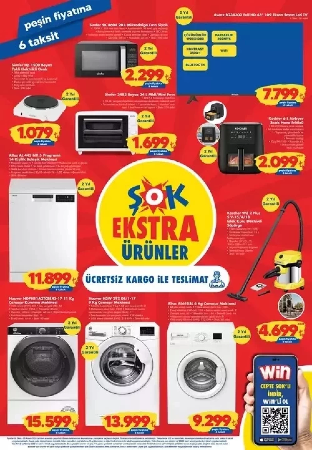 ŞOK’un aktüel kataloğunda, ev işlerinizi kolaylaştıracak elektrikli ev aletlerinde de büyük indirimler mevcut. Farklı işlevleriyle öne çıkan filtre kahve makinesi, mikrodalga fırın, bulaşık ve çamaşır makineleri gibi birçok ürün indirime giriyor.