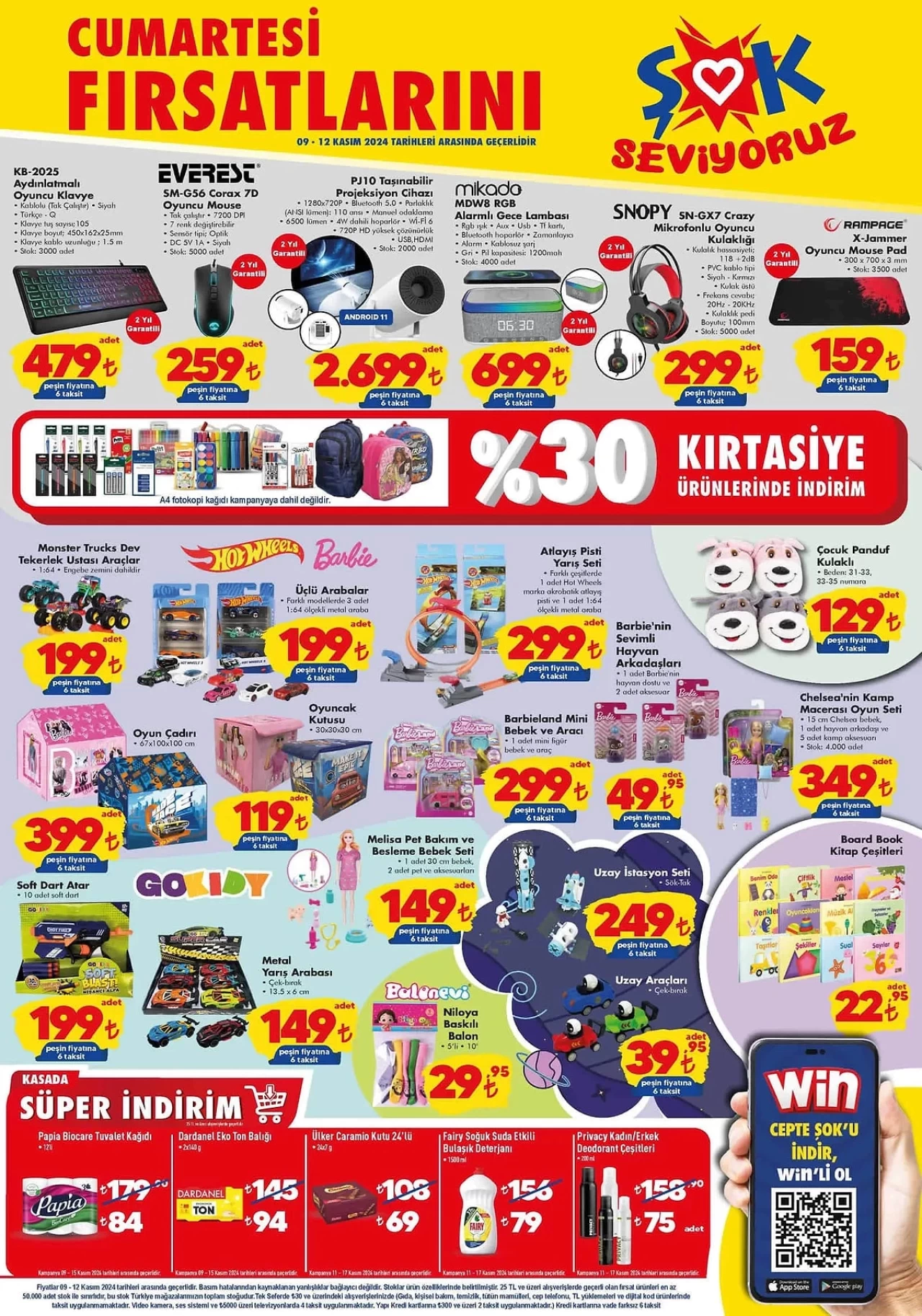Çocuklar için birçok oyuncak seçeneği de aktüel kataloğunda yer alıyor. Monster Trucks Dev Tekerlek Ustası Araçlar 199 TL, Hot Wheels Üçlü Arabalar 199 TL, Barbie'nin Sevimli Hayvan Arkadaşları 49,95 TL ve Oyun Çadırı 399 TL gibi uygun fiyatlı oyuncaklar dikkat çekiyor.