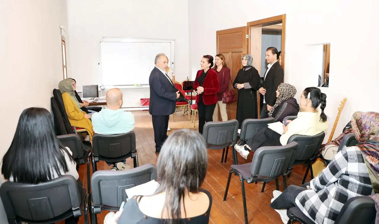 Erciyes Üniversitesi Güzel Sanatlar Bölüm Başkanı Nihal Şengün, Osmanlı Kültür Sokağı'ndaki bağlama kursunu ziyaret etti. Şengün, bu tür kursların toplumsal barışa katkısını vurguladı.