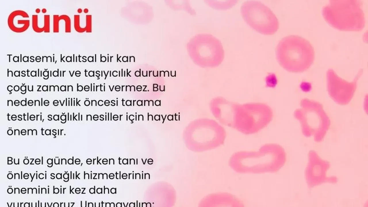 Doç. Dr. Bildirici, dünya genelinde 1993 yılından beri 8 Mayıs'ın "Dünya Talasemi Günü" olarak kutlandığını hatırlattı. Ülkemizde de çeşitli etkinliklerle hemoglobinopatilerin önemli bir halk sağlığı sorunu olarak gündemde tutulmasının ve toplumun bilinçlendirilmesinin hedeflendiğini sözlerine ekledi. Mevcut hemoglobinopati hastalarının yaşam süresinin uzatılması ve yaşam kalitelerinin artırılmasının da programın önemli hedeflerinden biri olduğunu vurguladı.
