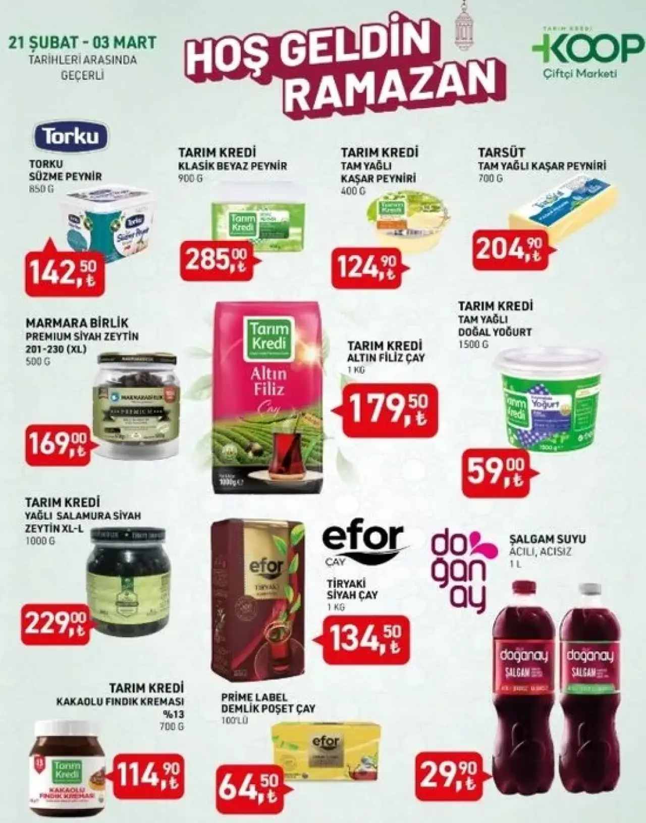 Tarım Kredi, 4 Mart tarihine kadar geçerli olan kampanya kapsamında, pek çok üründe büyük indirimler sunuyor. İşte bu hafta indirimli fiyatlarla satışa sunulan bazı ürünler: