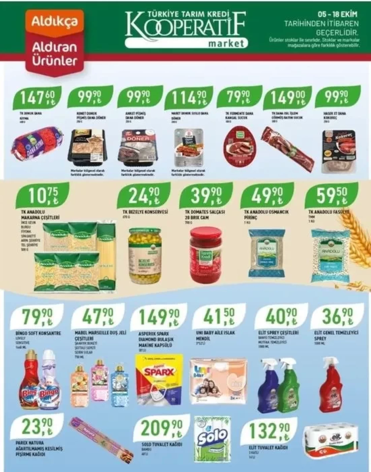 Bunun yanı sıra, ev temizlik ürünlerinde de dikkate değer indirimler gözlemleniyor. Bulaşık deterjanları, sabunlar ve diğer temizlik malzemeleri, evde hijyen sağlamak isteyen tüketicilere uygun fiyatlarla sunulacak. Tarım Kredi Kooperatif'in bu kampanyası, bütçesini düşünen aileler için büyük bir avantaj sunuyor.