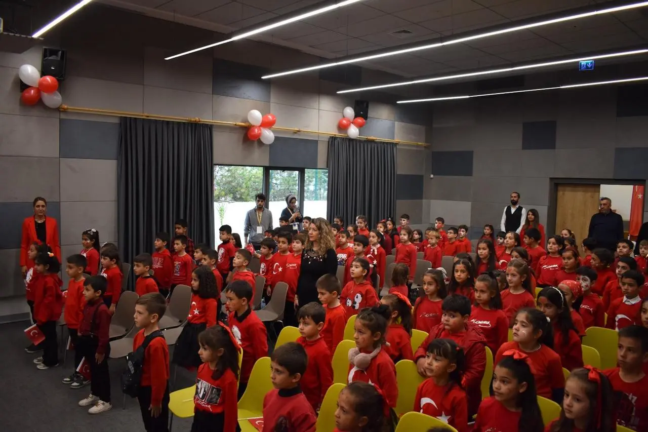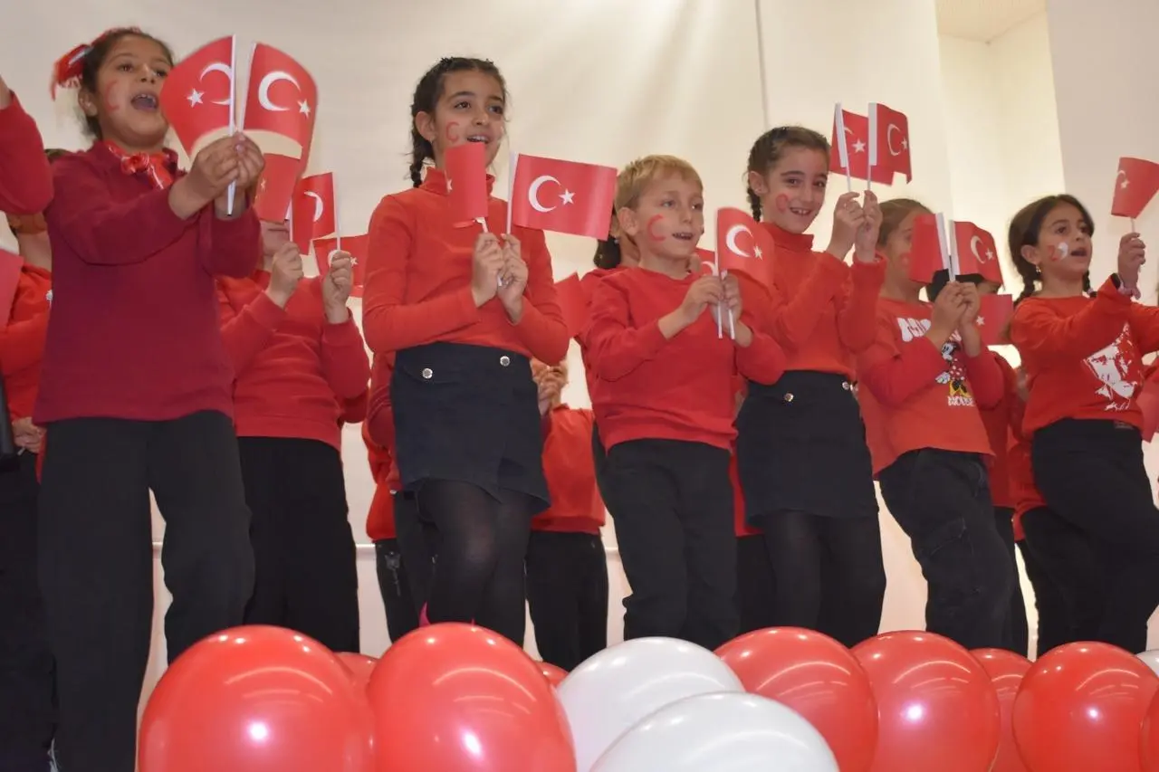 Gönüllüler ve velilerin katılımıyla düzenlenen programda çocuklar koro gösterisi sundu. Cumhuriyet şarkıları salonda büyük heyecan yarattı.