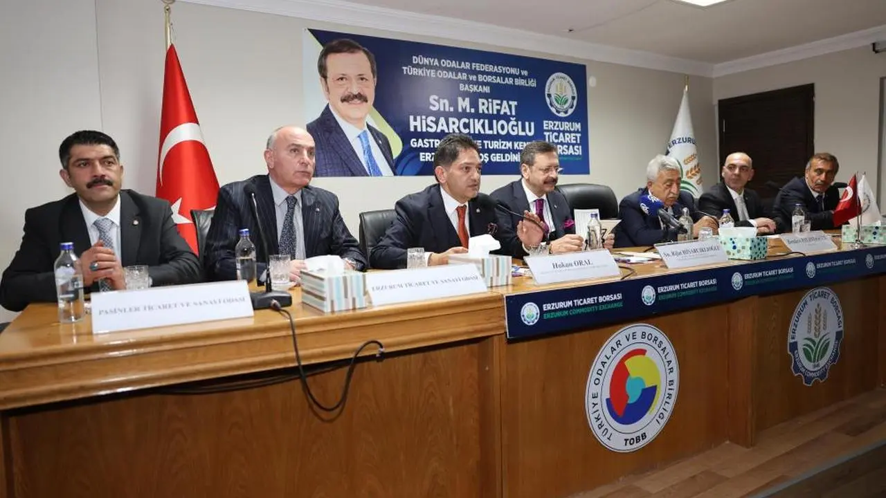 ETB Konferans Salonu'nda düzenlenen toplantıda konuşan Başkan Hakan Oral, Hisarcıklıoğlu'nun ziyaretinden duyduğu memnuniyeti dile getirerek, Erzurum Ticaret Borsası'nın yürüttüğü önemli projeleri detaylı bir şekilde aktardı. Lisanslı Depoculuk Projesi, Modern Borsa Kompleksi Projesi ve diğer çeşitli projeler hakkında bilgi veren Oral, özellikle yeni modern borsa hizmet binası için TOBB Başkanı Hisarcıklıoğlu'ndan destek istedi.