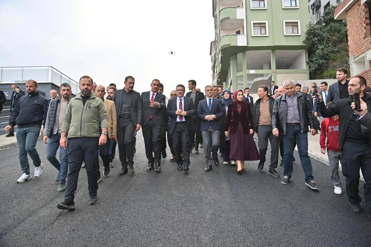 Genç, Sancak Mahallesi'ndeki yol yapım çalışmalarında bilgi aldı. Yomra Belediye Başkanı ve diğer yetkililer eşlik etti.