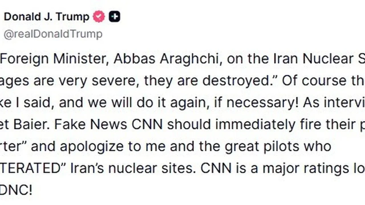 Trump, CNN'in İran'ın nükleer kapasitesinin tamamen engellenmediği yönündeki haberlerini eleştirdi. "Yalancı muhabirlerini kovmalı ve özür dilemeli" açıklamasını yaptı.