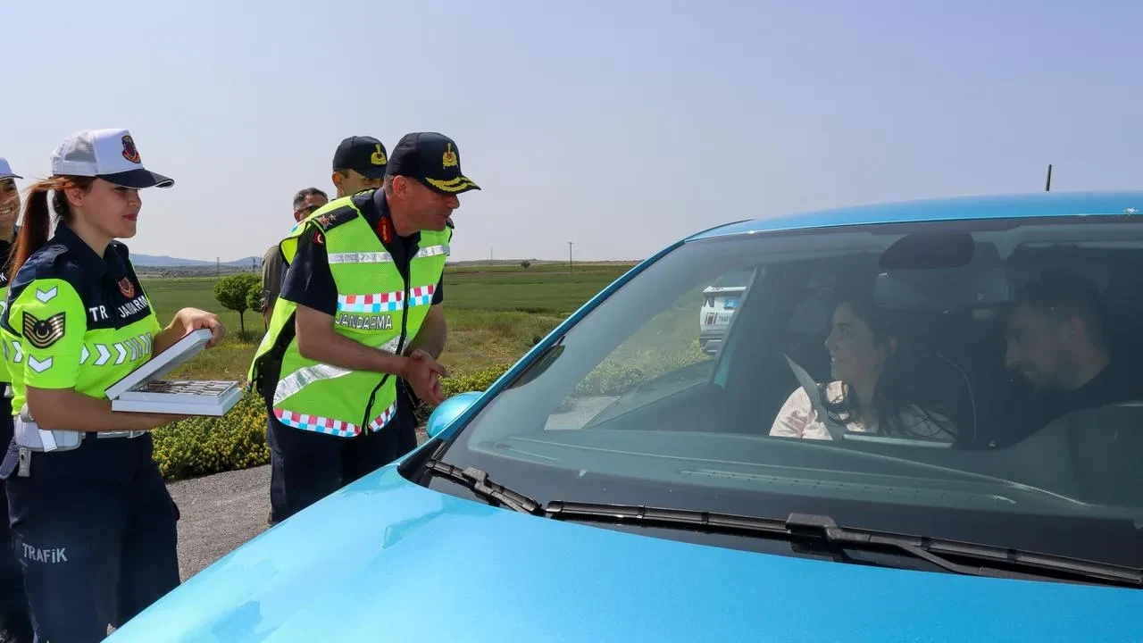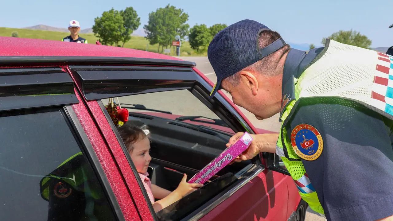 Denetimler sırasında araçlarda bulunan çocuklara hediyeler verildi. 'Bir kural bir ömür' mottosuyla yürütülen çalışmalarda vatandaşlara güvenli yolculuk dilekleri iletildi.
