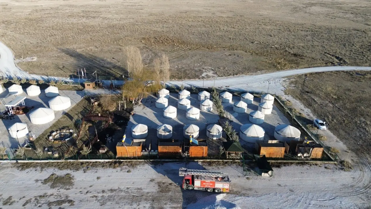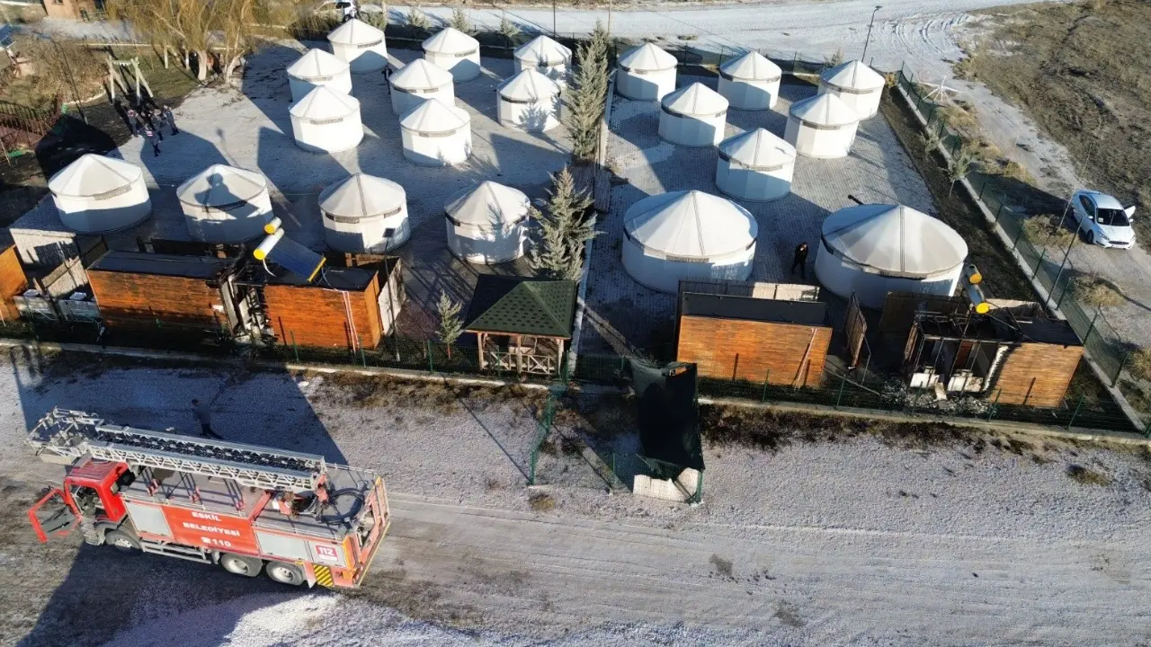 Eskil ilçesinde bulunan ve Tuz Gölü’ne yakın konumda yer alan Tuz Gölü Obası adlı butik otelde, akşam saatlerinde tuvalet ve banyo kabinlerinde henüz bilinmeyen bir sebeple yangın çıktı. Yerli ve yabancı turistlerin yoğun olarak tercih ettiği bu alanda, kıl çadırlarda konaklayan tatilciler, alevlerin hızla yayıldığını fark ederek durumu hemen yetkililere bildirdi.