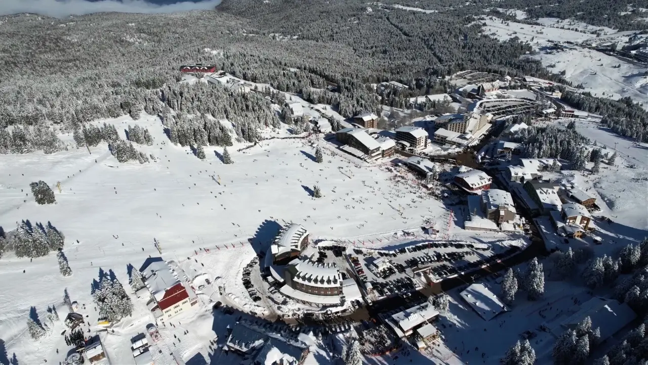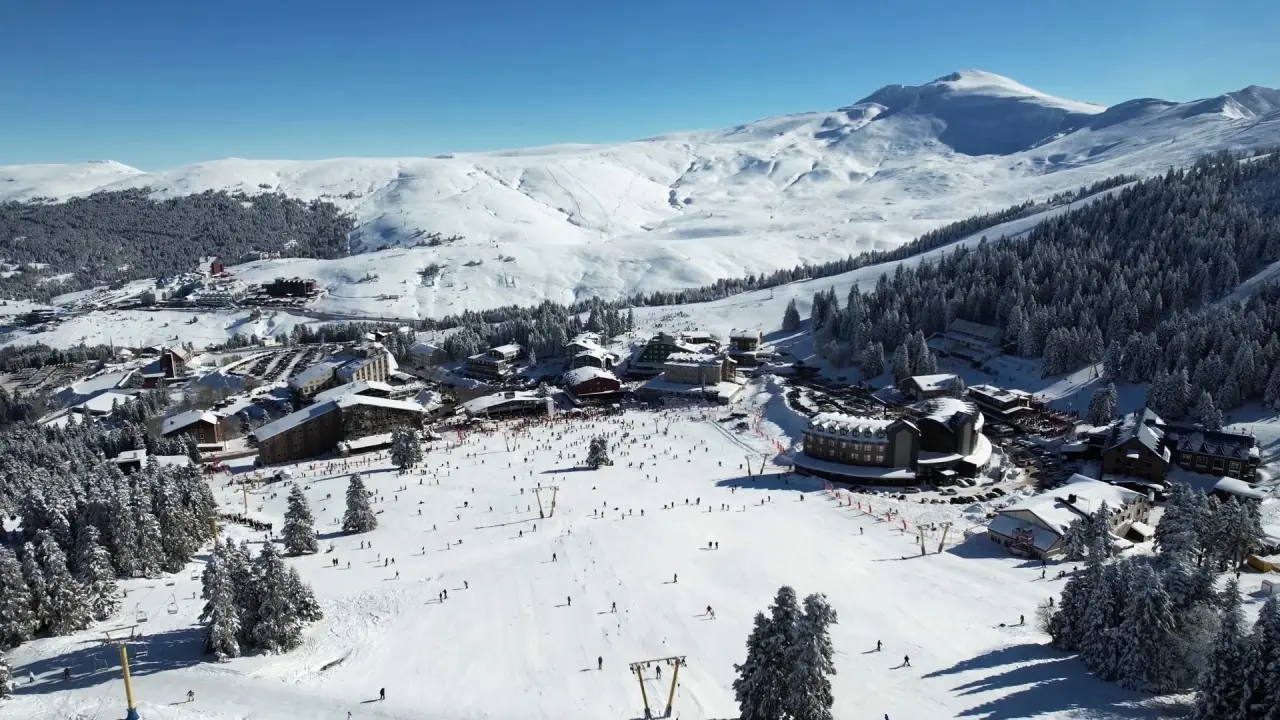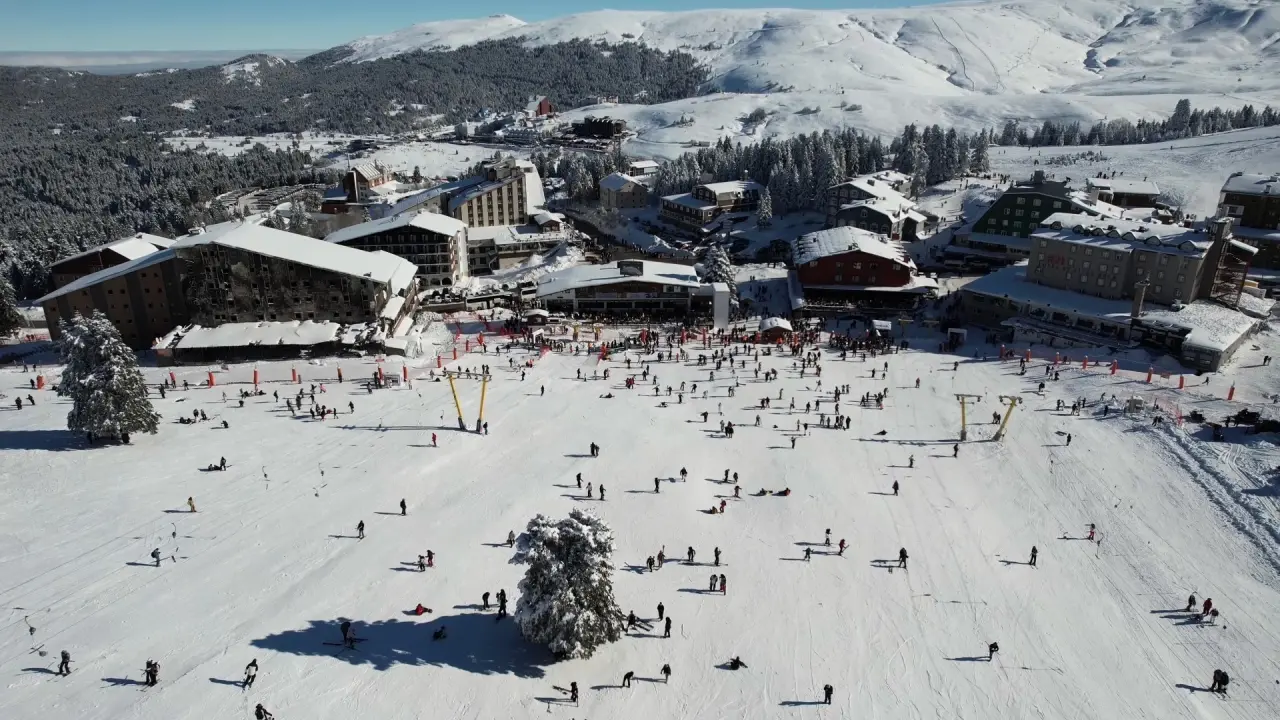 Bursa'da bulunan Uludağ, sömestr tatilinde kayak severlerle doldu taştı. Drone ile çekilen görüntüler, bölgenin büyüleyici atmosferini ortaya koydu.