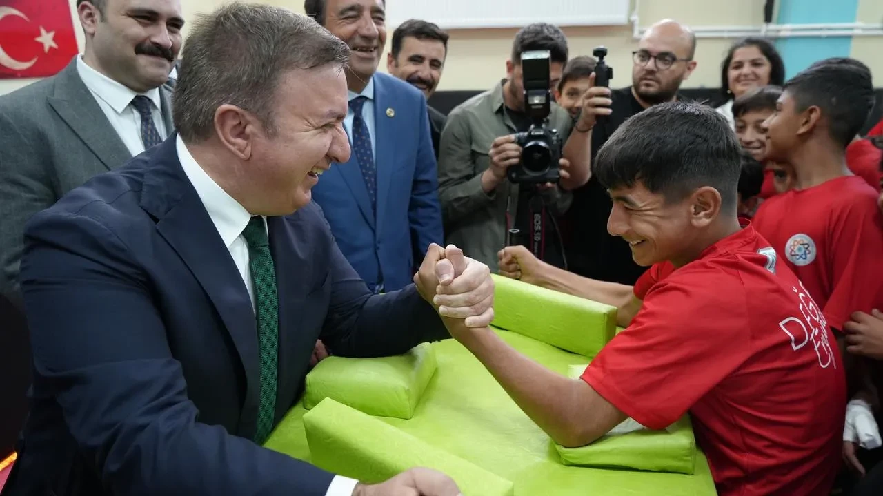 Vali Aydoğdu, açılış programında öğrencilerle bilek güreşi yaparak eğlenceli anlar yaşadı. Bazı öğrencileri yenen Vali, bazılarına karşı da yenilgi aldı.